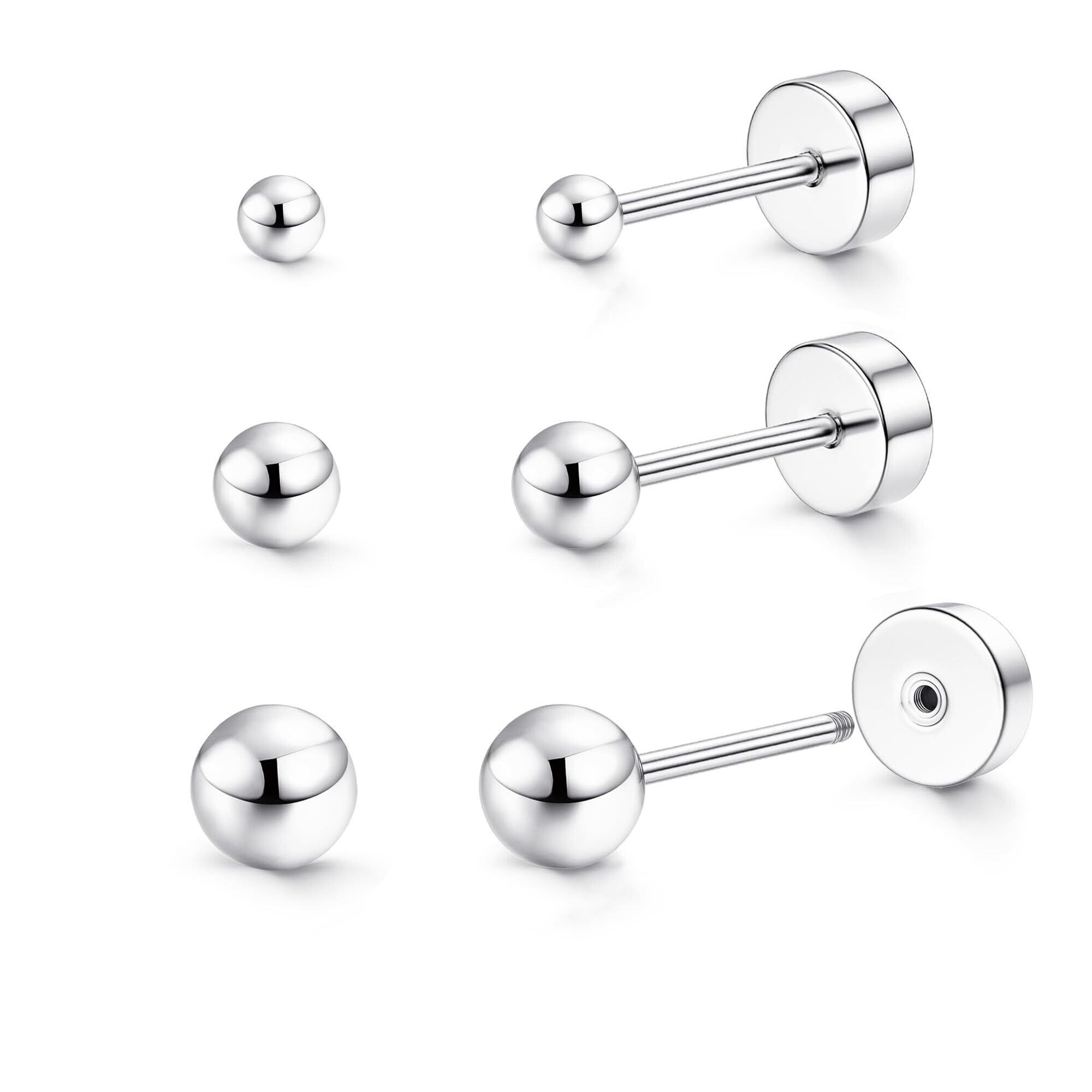 【サイズ】ボールの直径はそれぞれ2mm、3mm、4mm、ストレートレバーの直径は0.8mm(20G)、長さは6mm、ピアスキャッチのサイズは5mmです。数量:3ペア6個入り。