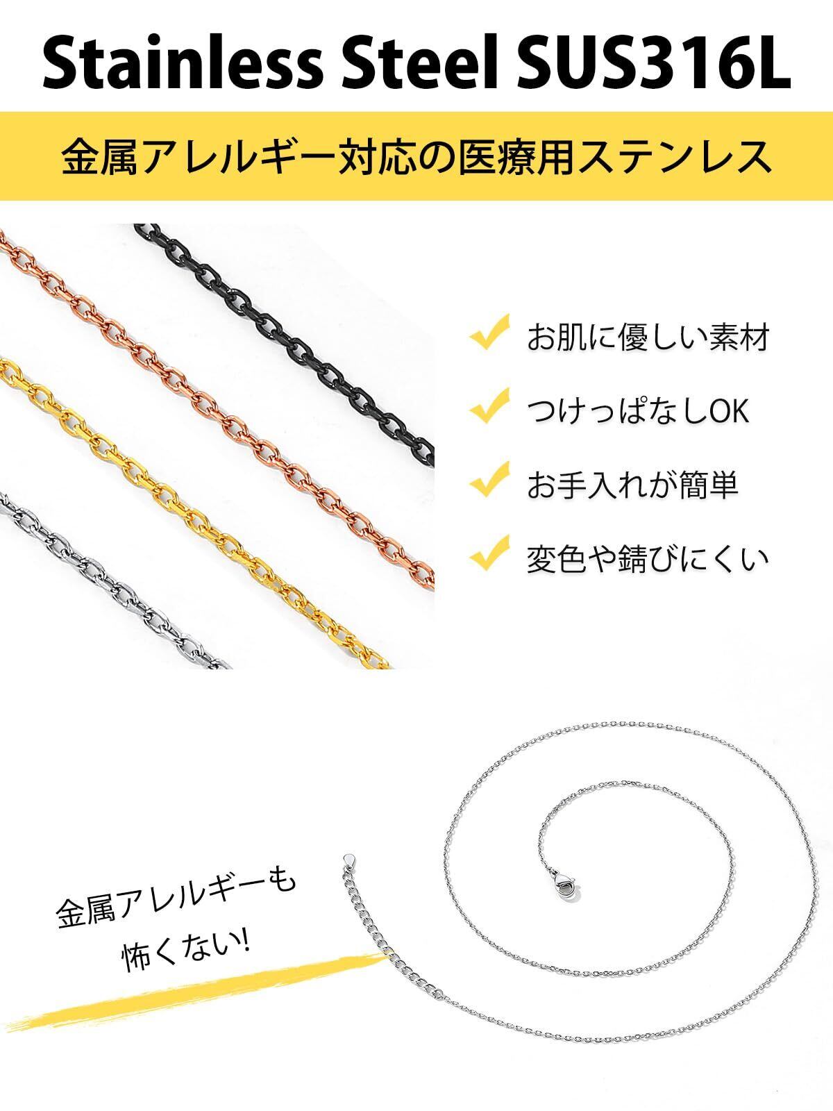 [長さを調節できるネックレス] チェーンの幅は1.4mmで、長さは40cm、45cm、50cm、55cm、60cmの5種類があります。約+5cmアジャスター付きます。長さを調節できるため、合わせるトップスによって好みの長さに着用可能です。