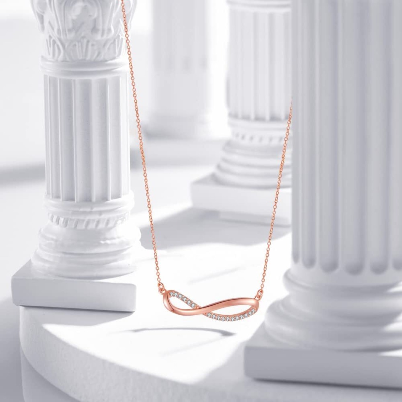 メビウス: このジルコニア ネックレスの無限のパターンは、あなたへの愛を無限のサイクルで宣言します。愛から始まり、永遠に、死ぬまで続きます