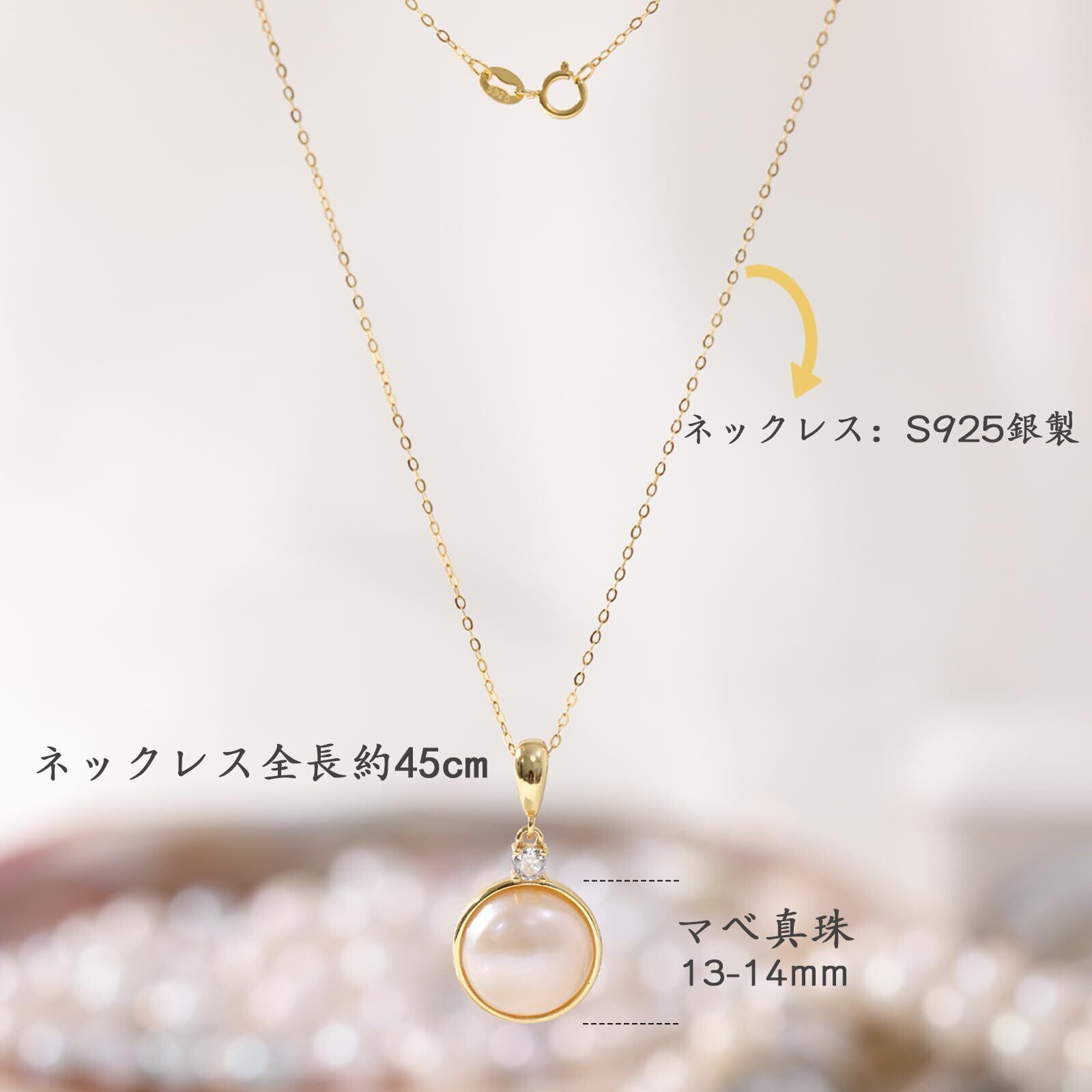 【素材とサイズ】厳選された13-14mmの海水マベ真珠と、全体にS925シルバーを採用。ネックレスの長さは約45cmで、ニッケル・鉛・カドミウムを含まない安全設計。酸化防止加工を施し、敏感肌の方でも安心してご着用いただけます。