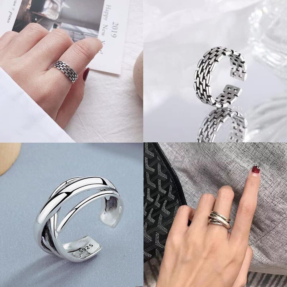 [YFFSFDC] 指輪 6個入り リング アクセサリー ファッションリング メンズ レディース 人気 セット 調節可能 おしゃれ シンプル シルバー