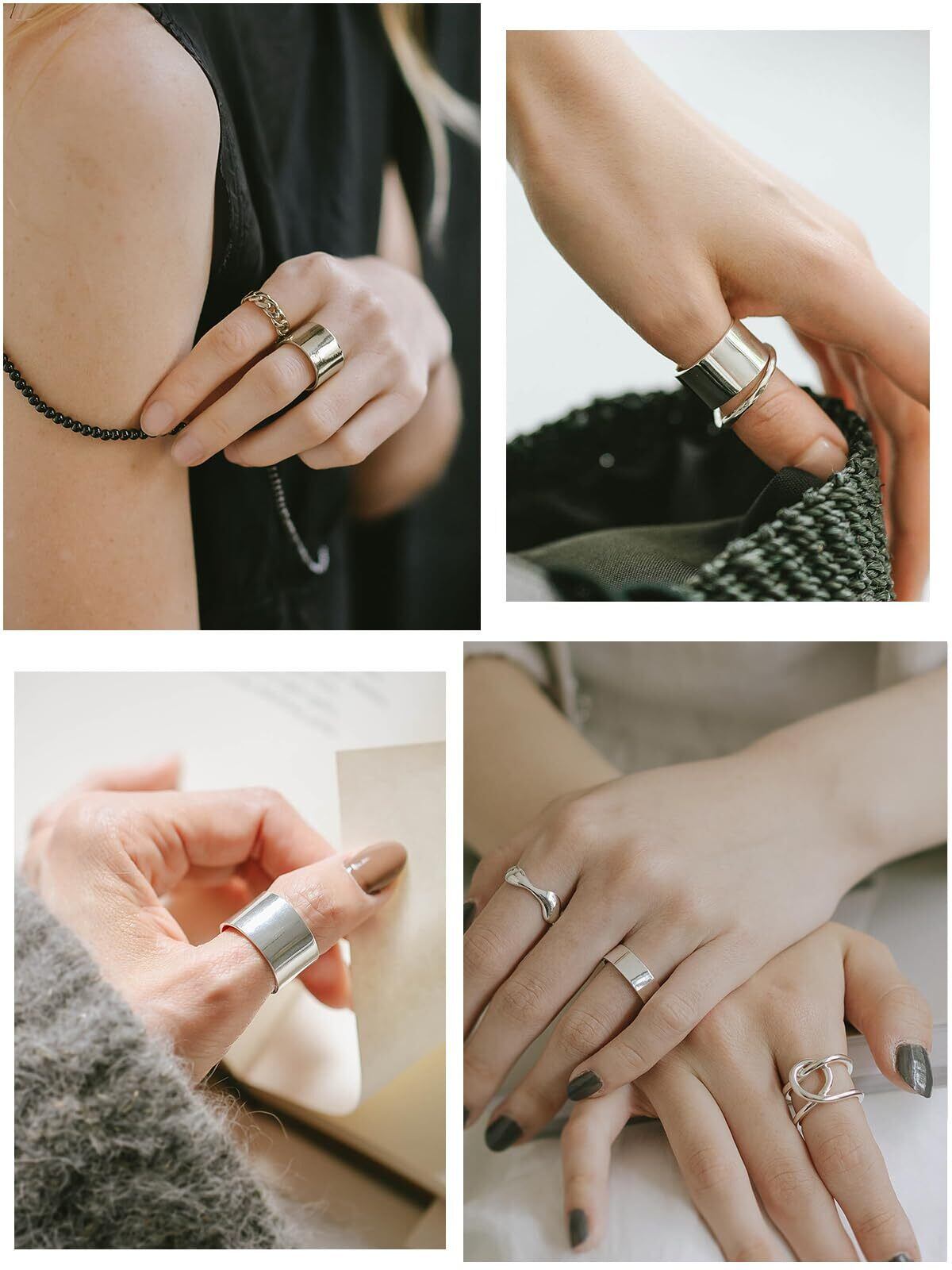 [太めの指輪] 指輪の幅は5mm、10mm、15mmの3サイズ展開します。1つ着けでも、組み合わせで印象が変わる重ね着けでも、その日の気分に合わせて、お楽しみいただけます。