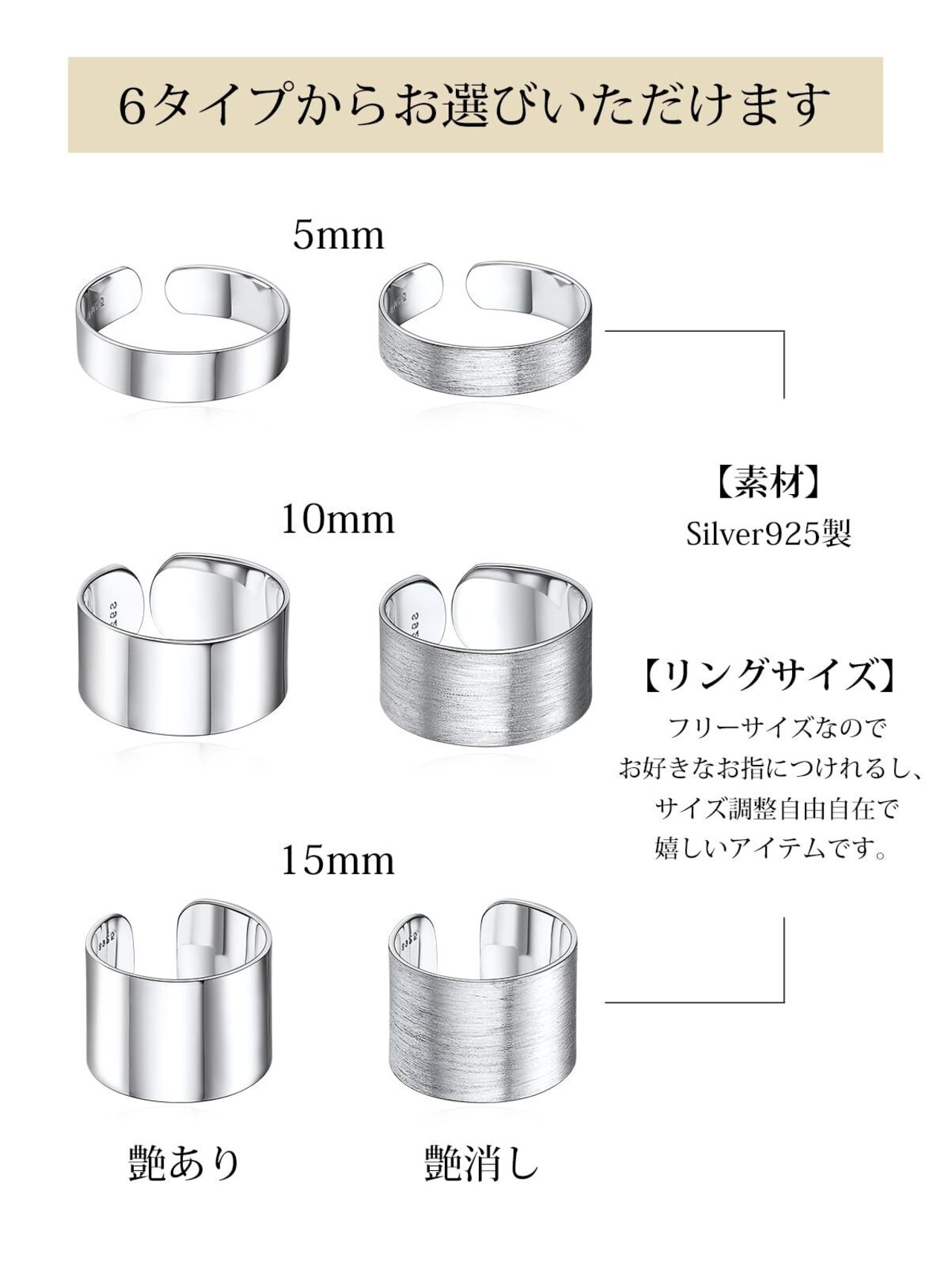 [ChicSilver] 指輪 メンズ シルバー925 リング レディース シンプル フリーサイズ 金属アレルギー対応 太め 5mm/10mm/15mm 艶消しアクセサリー
