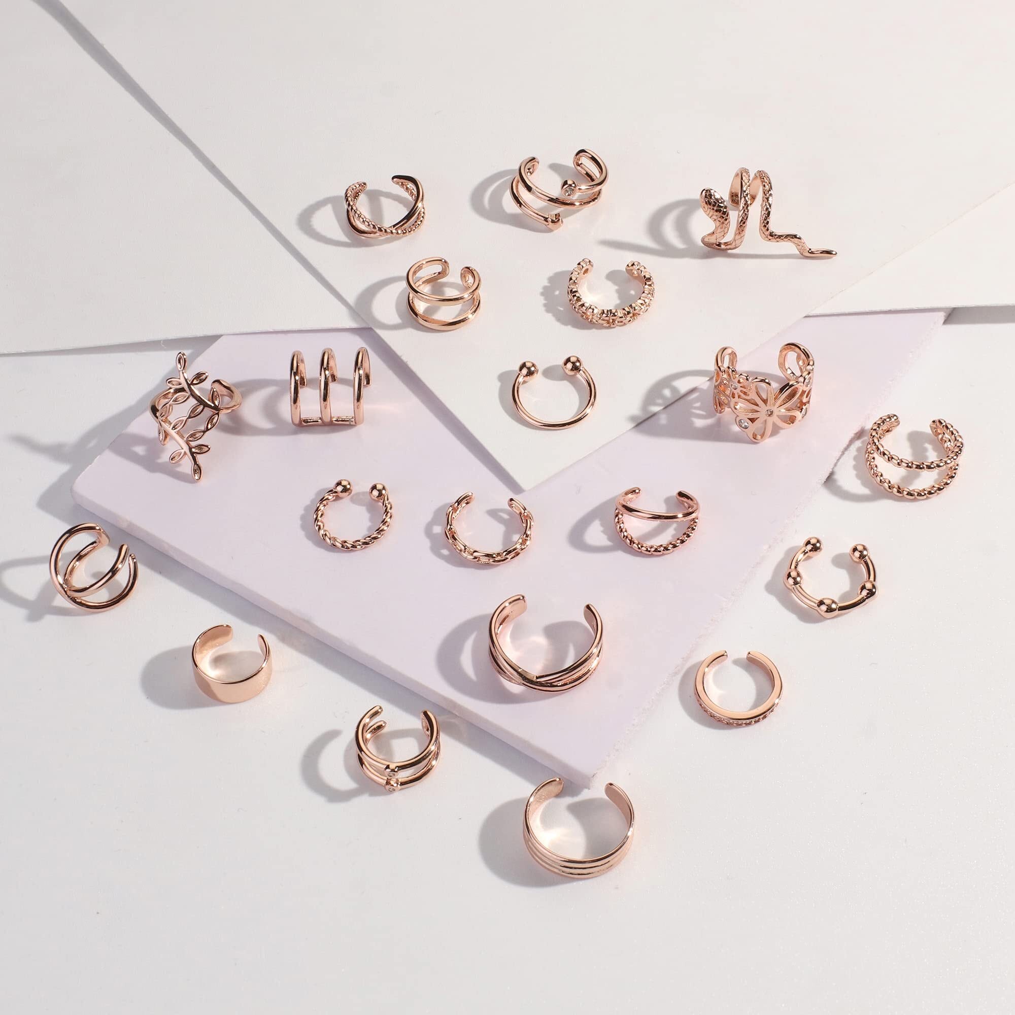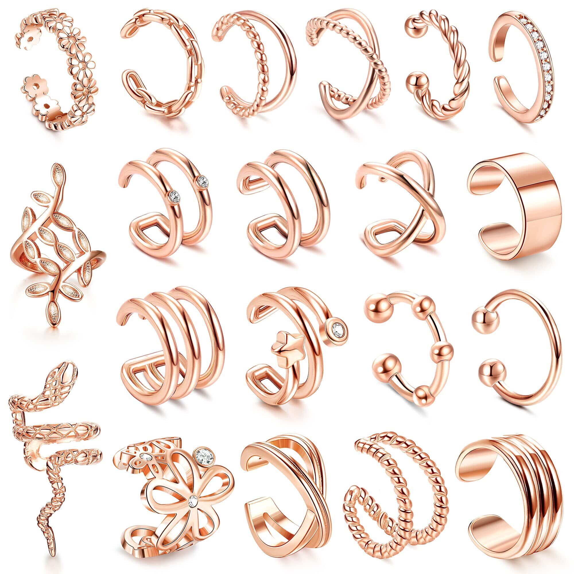 ️【女性用カフイヤリング ノンホールピアス】 1 回のご注文には、さまざまなスタイルのカフ イヤリング 20 個が含まれます。シルバー カフ イヤリング、ゴールド カフ イヤリング、ローズゴールド カフ イヤリング 3 色からお選びいただけます。 ノンピアスカフのデザインは通常、耳の軟骨に着用され、ピアスのある耳にもピアスのない耳にも適しており、さまざまなマッチング方法があり、よりファッショナブルなトレンドに導きます。