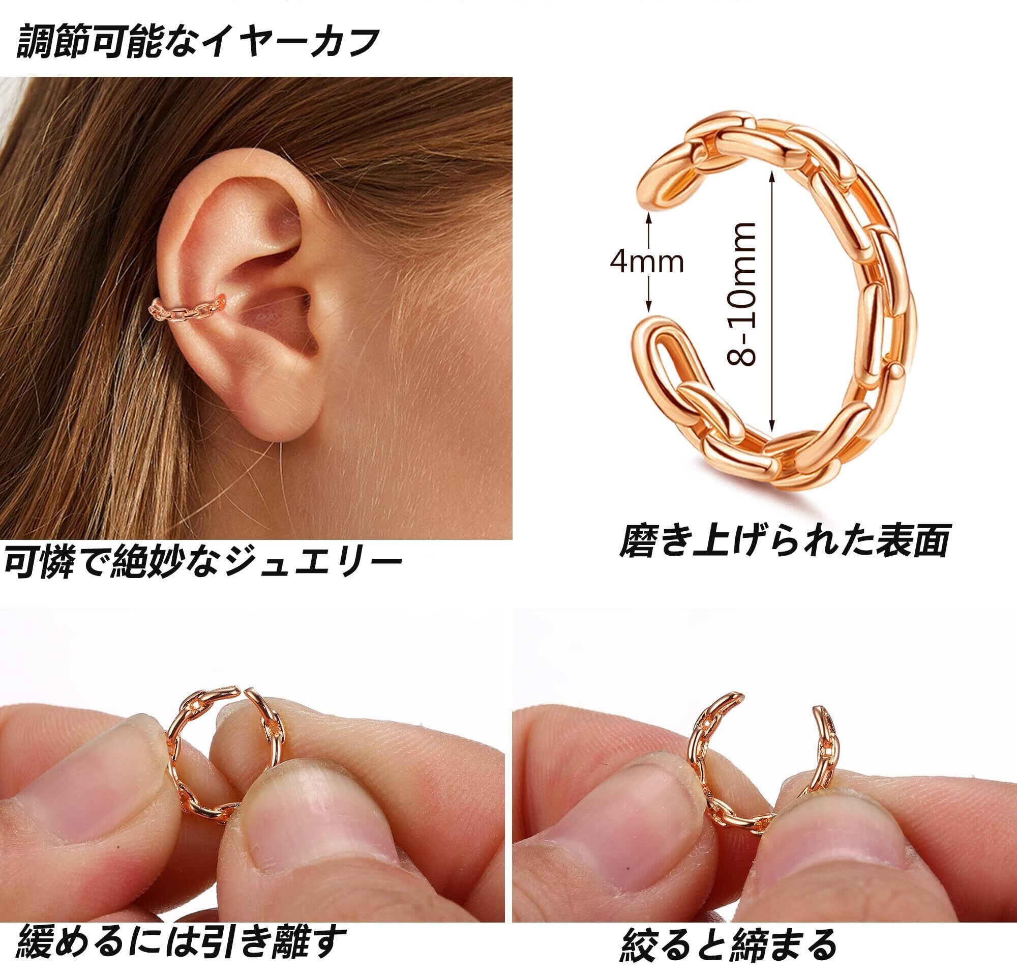 【女性用イヤーカフイヤリング】これらのイヤーカフは非ピアスカフイヤリングで、ほとんどの人の耳軟骨に適しており、軽量で快適に着用できます。特定のサイズは写真で見つけることができます。 注意: 一部のイヤークリップは調整可能なイヤークリップであり、その他は調整できない厚いイヤーカフです。詳細については画像を確認してください。調整可能なイヤリングは「調整可能」であることに注意してください。 他のイヤリング ジュエリーと一緒に軟骨に着用して、自分のスタイルを作成することもできます。