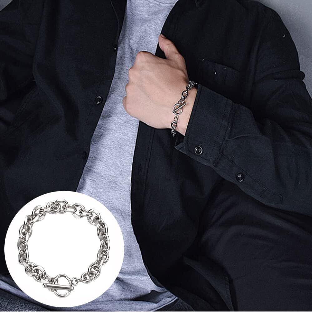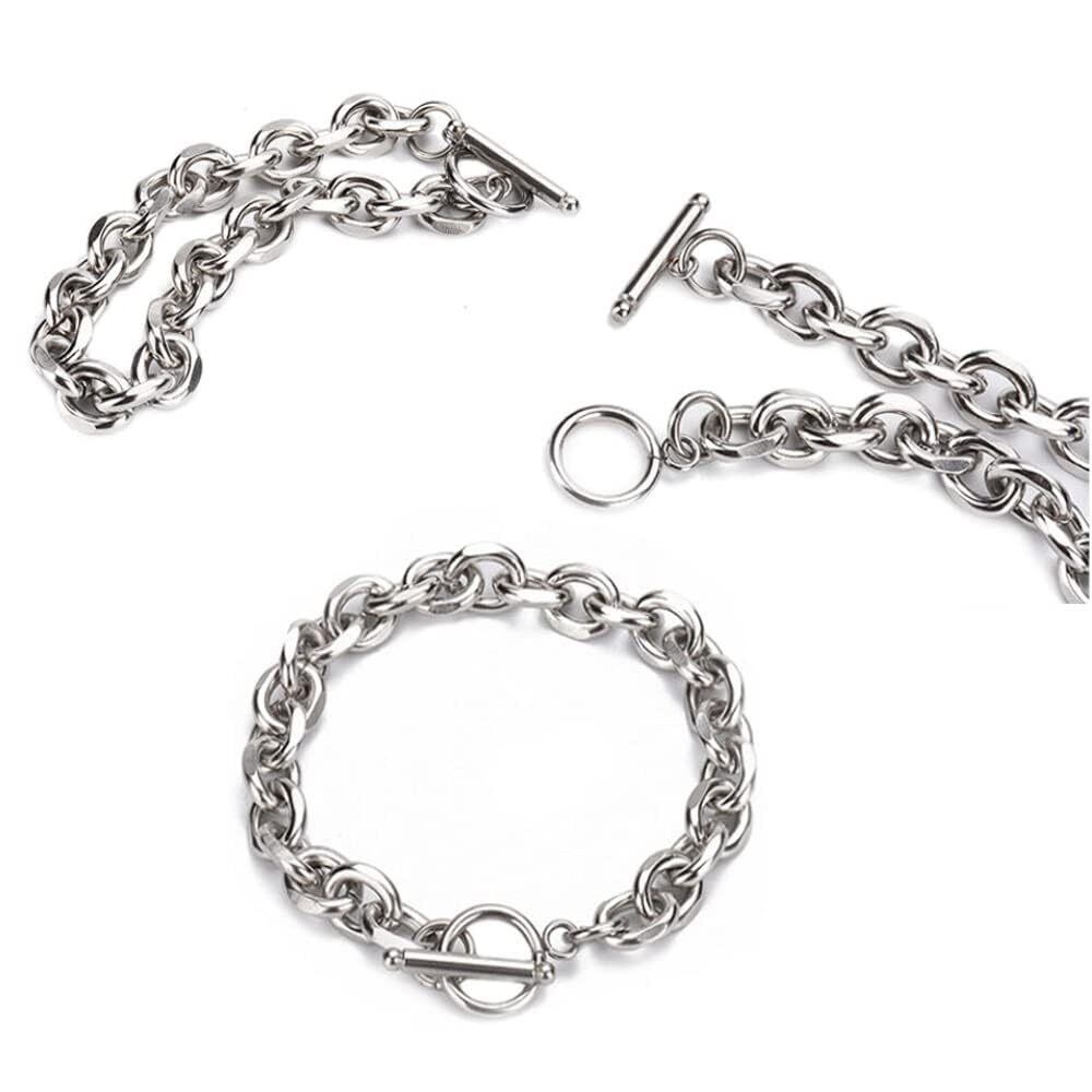 YINKE ブレスレット メンズ レディース アクセサリー ステンレス マンテル チェーン シルバー シルバー ストリート アクセサリー アレルギー対応