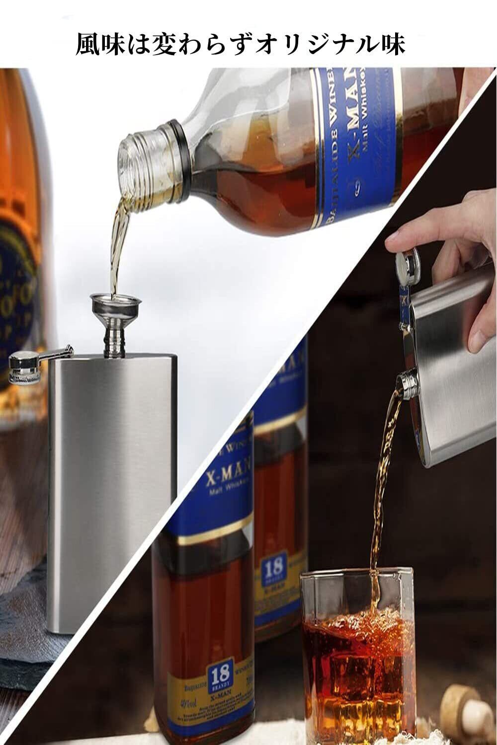 スキットル ヒップフラスコ ステンレス製 漏斗付き大容量 ウイスキー 清酒 軽量 持ち運び便利 (10オンス-シルバー)