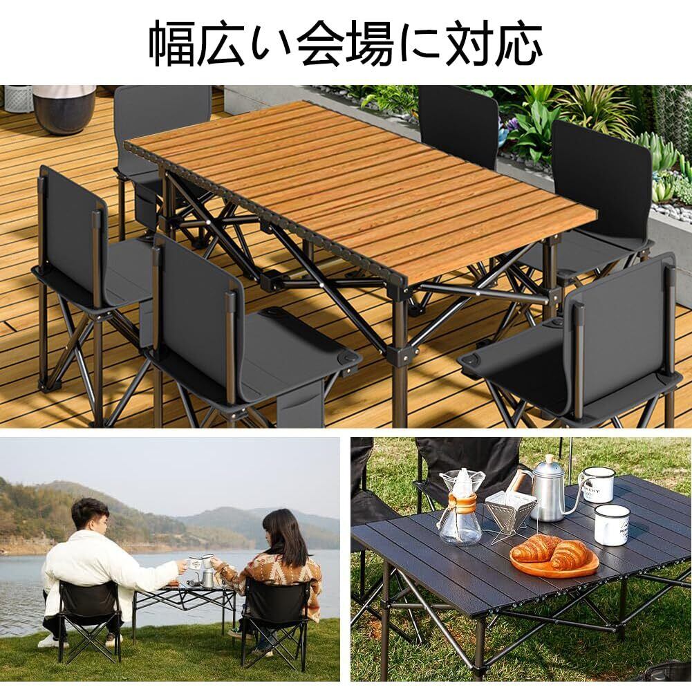 HEEOREV アウトドア テーブル チェアセット キャンプ テー ブル 7点セット(55*49*95CM、、木の色) 屋外用折りたたみ椅子 自動運転ツアー ピクニック テー ブルと椅子 組立簡単 軽量 防災 アウトドア キャンプ 釣り ピクニック バーベキュー キャ ンプ用品 花火大会 野外 テント ガーデン 【収納 袋付き テーブル1台につき収 納袋1枚 チェア1脚につき収 納袋1枚 】