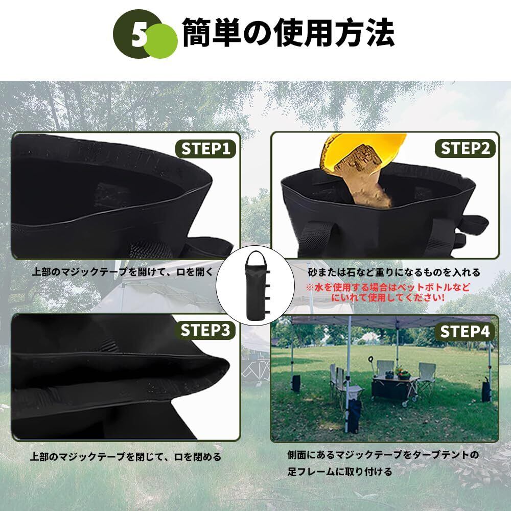 ToopTapu タープ テント重り (4個セット/容量6L*4) テント ウェイト テント 重り テント 重し タープ ウエイト マルチ ウエイト ウェイトバッグ バンドテープ付き タープテント 重し キャンプ コンパクト 砂・石ウェイト 万能ウエイト4個入り (砂/石)