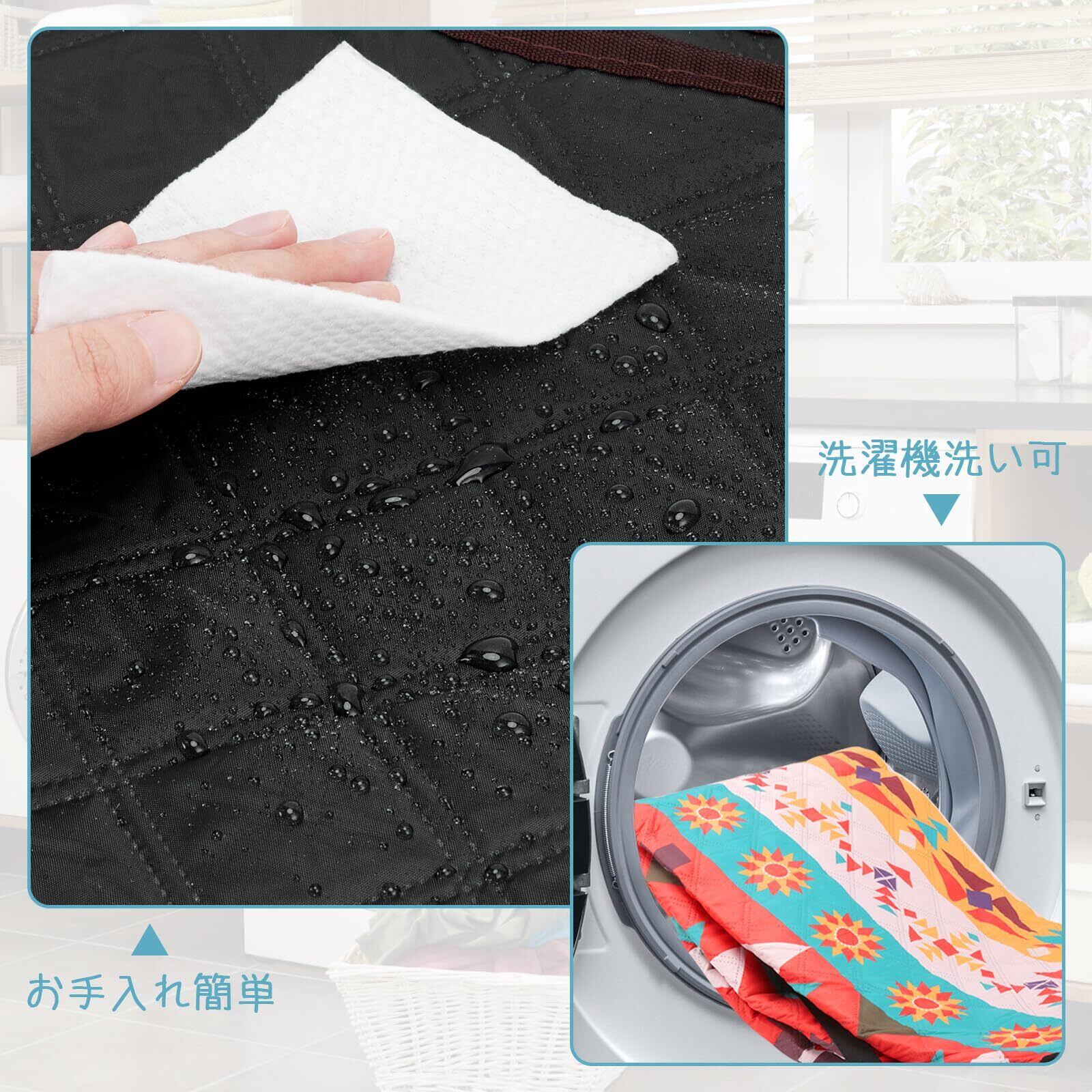 『肌触り良い&撥水素材』表面は肌に優しい紬素材で触り心地が抜群です。水をこぼしてもすぐには浸透せず、蓮の葉のように水たまりを作るため、吸収前に拭き取ればお手入れが簡単です。裏面には撥水性に優れた210Dオックスフォード生地を使用し、地面からの湿気を効果的に抑えられます。