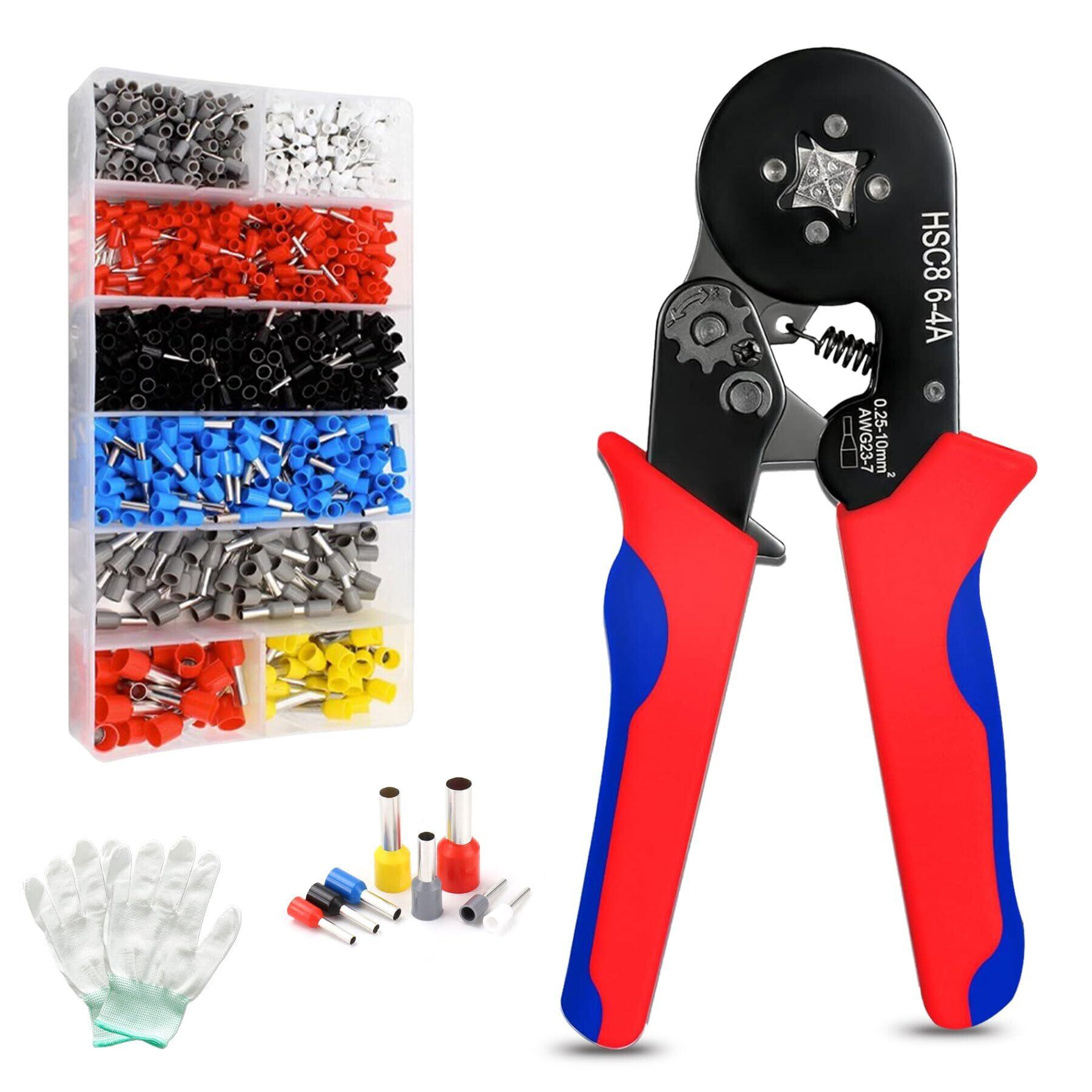 XXIAOTIAN(ゼクシオティアン) フェルール圧着工具 圧着ペンチ 1250PCS 圧着スリーブ用圧着ペンチ 0.25-10mm² 強力 ばね付き ロック付き フェルール端子セット 手袋 電気工事士 圧着端子付き (1250pcs+手袋) | Bloomia
