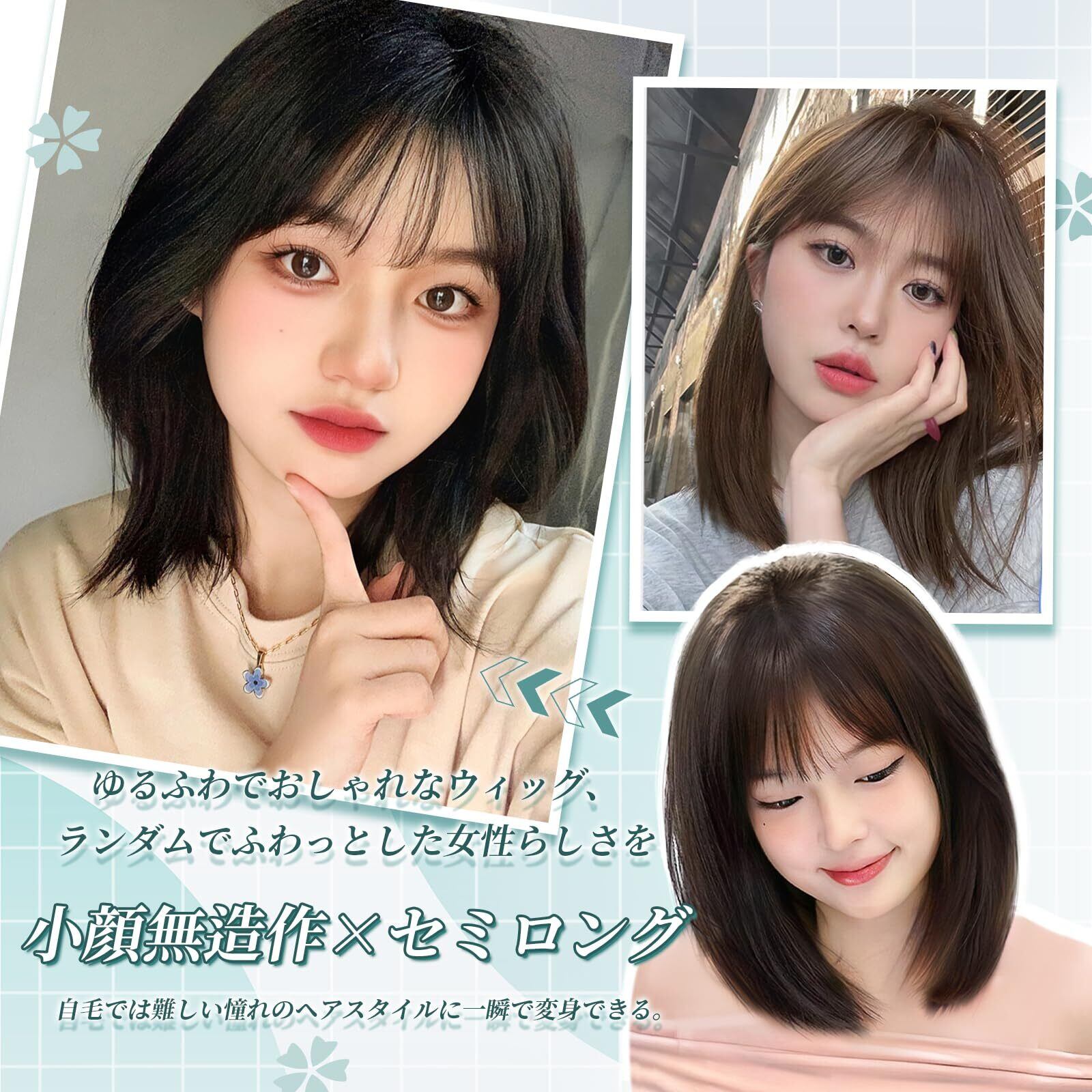 FESHFEN ウィッグ セミロング ミディアム フルウィッグ ボブ 黒髪 ショート 女装 可愛い ブラック 自然 ストレート かつら レディース wig ぱっつん前髪 ハロウィン 小顔 原宿系 日常 耐熱 ネット/櫛付き ハニーブラウン | Bloomia