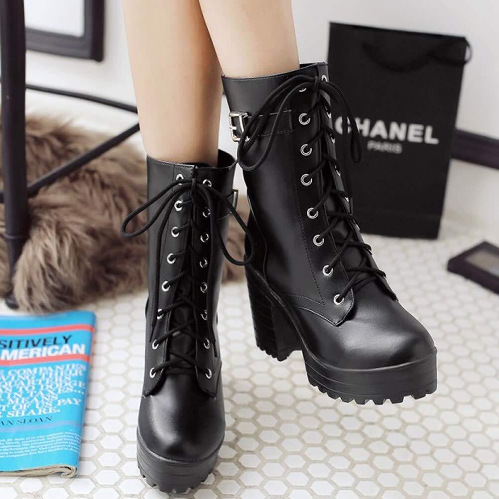 [Cozy Maker] C&M ブーツ レディース レースアップ 編み上げ 厚底 太ヒール ローヒール 秋冬 美脚 カジュアルシューズ COSPLAY コスプレ シンプル 無地