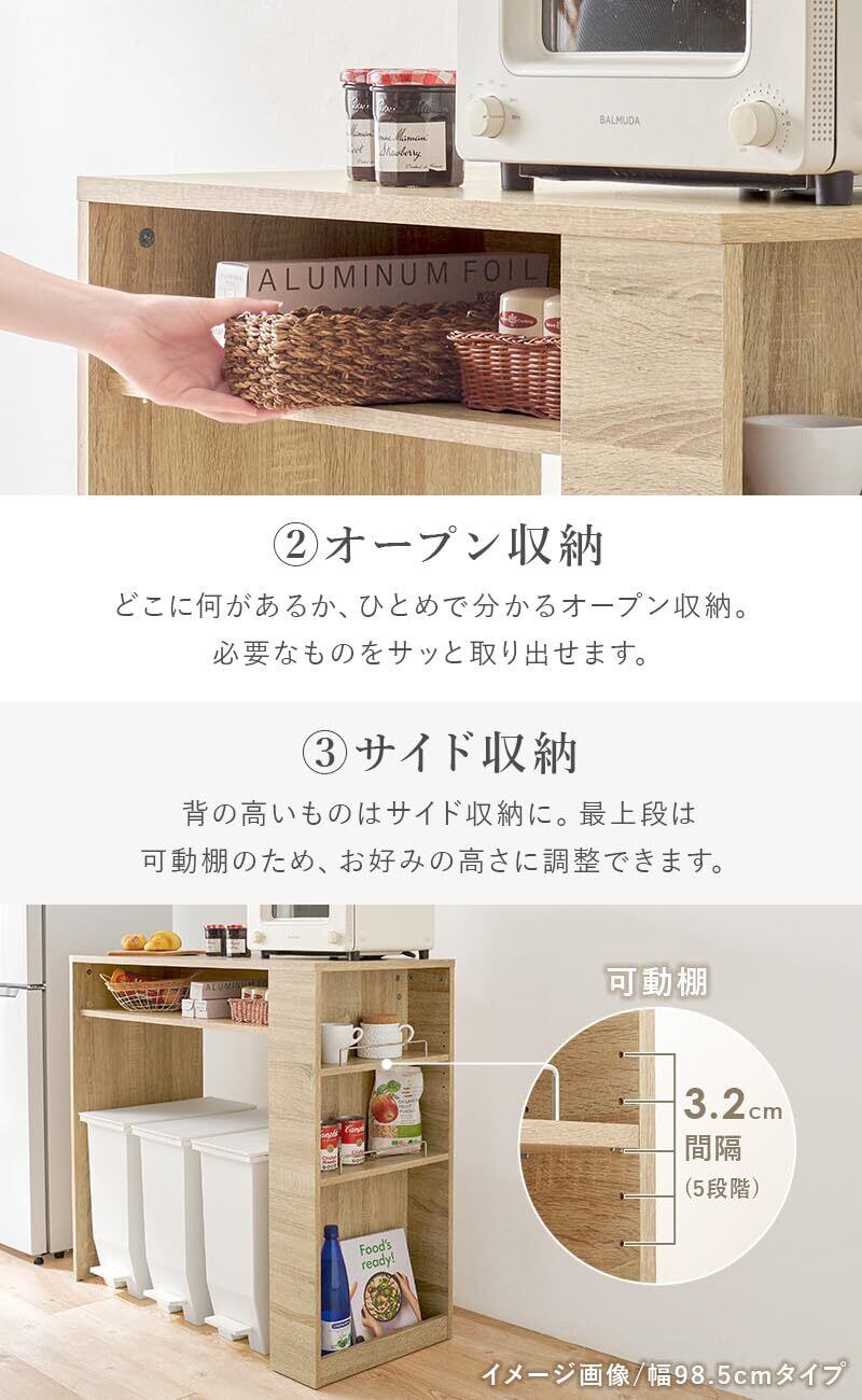 コンパクトながらたっぷり収納できます。天板には大型レンジが置けて、ちょっとした作業スペースにも。