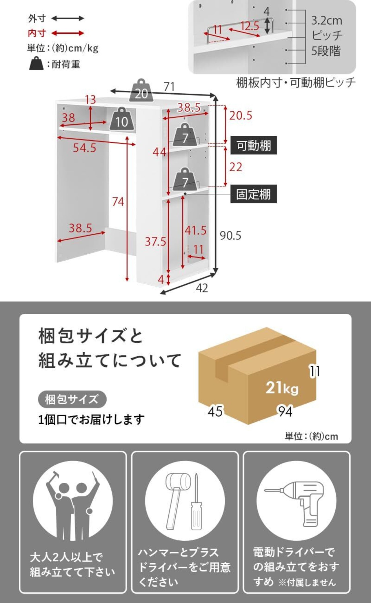 【商品サイズ(約)】:幅71×奥行42×高さ90.5cm