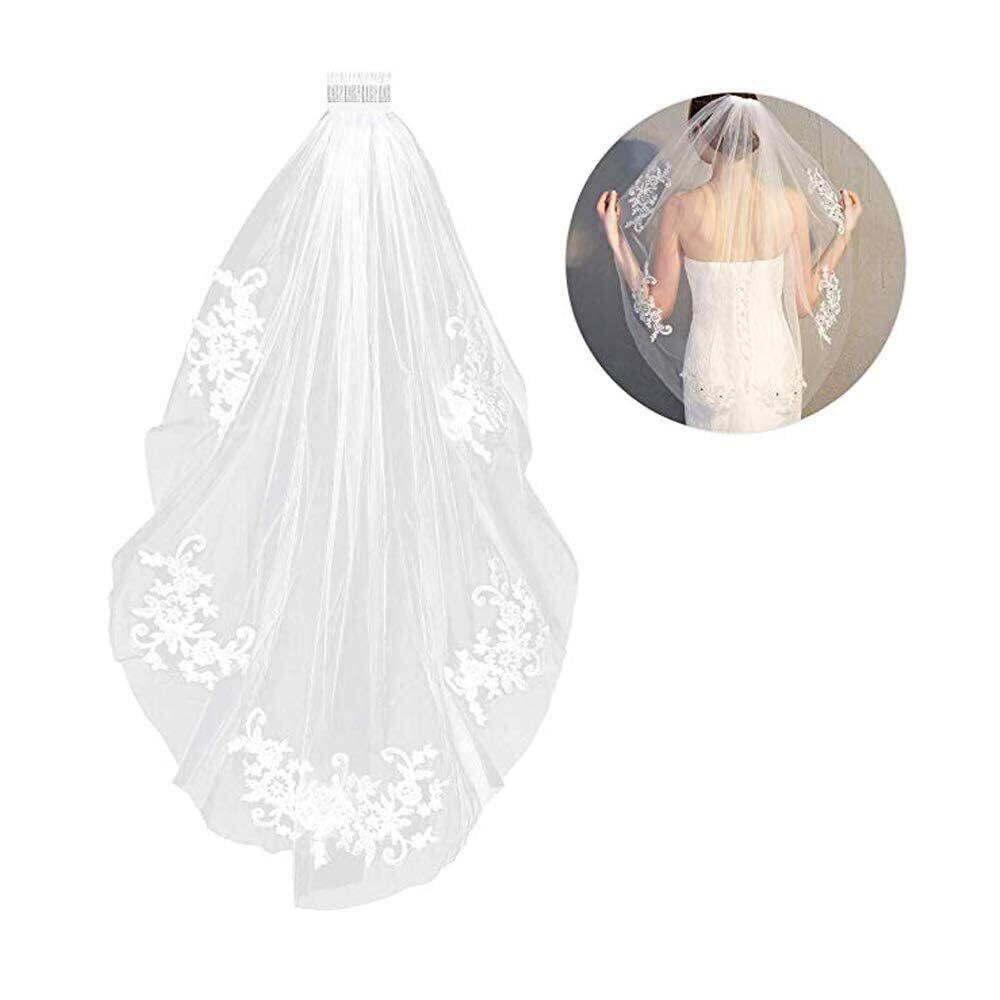 [Ymgot] ウエディング ベール コーム付き ショート ブライダル ヴェール 1段 レース 刺繍 花嫁 結婚式
