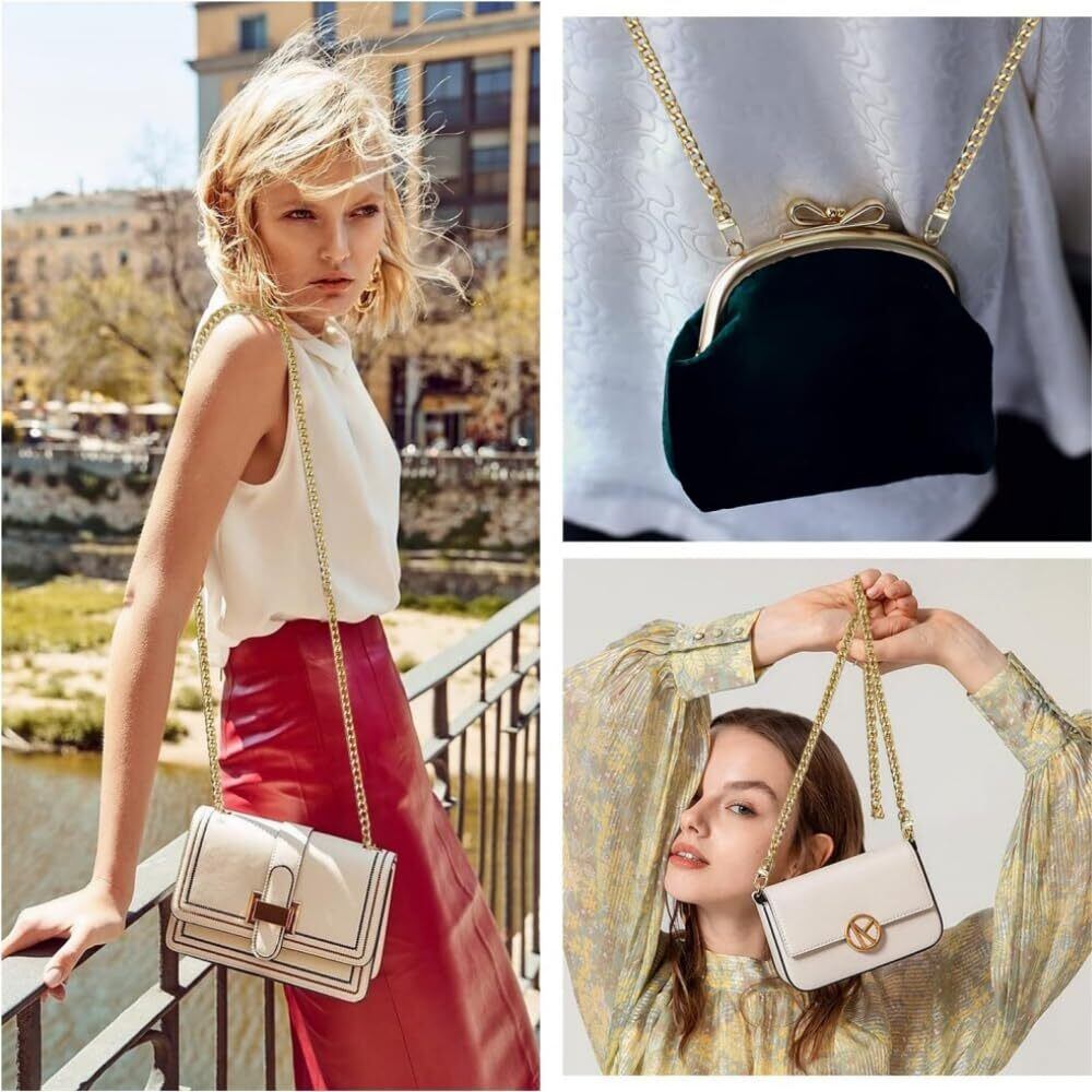 【幅広く使用】バッグチェーンは、様々なハンドバッグ、財布、ショルダーバッグ、ショルダーバッグ、または交換ベルトとうまく組み合わせることができます。元のバッグチェーンの代わりに使用したり、延長テープとして使用したりします。