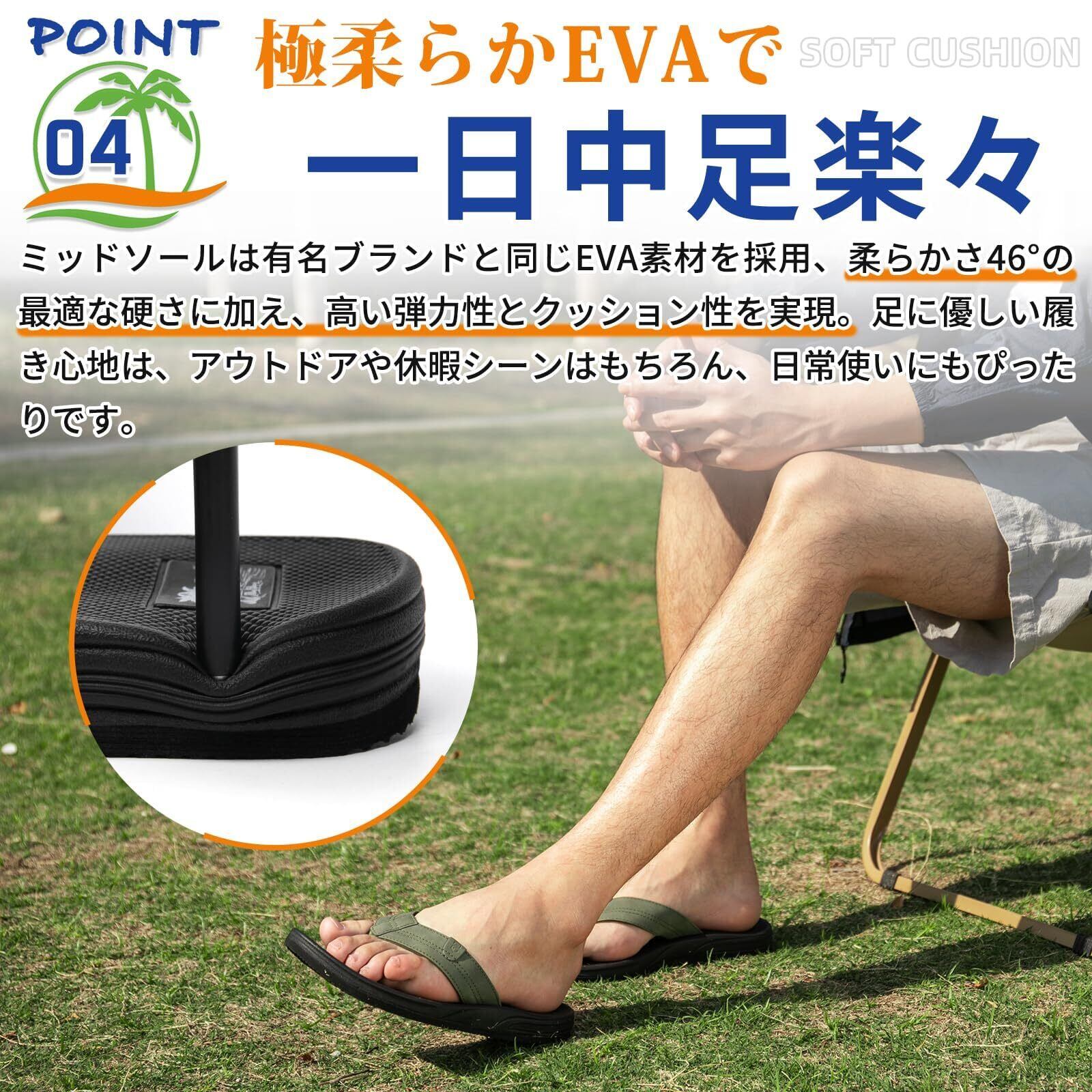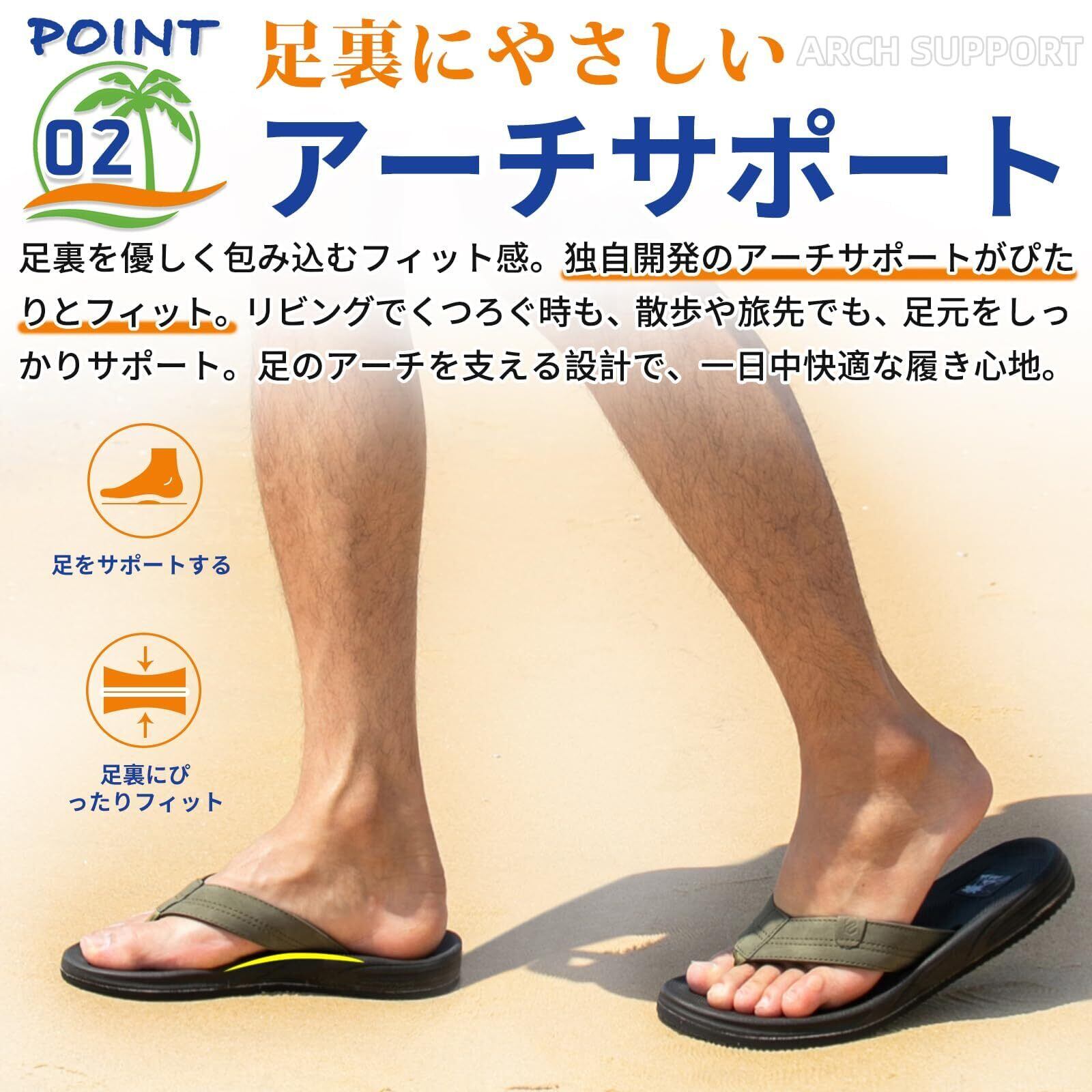 【2. 足弓サポート設計で快適さをアップ】独自の足弓サポートが、長時間の歩行でも快適さを保ちます。ビーチや街歩きなど、どんなシーンでも足への負担を軽減し、軽やかな歩行をサポートします。リラックスしたひとときでも、足元からしっかりと支えられるので、一日中快適に過ごせます。