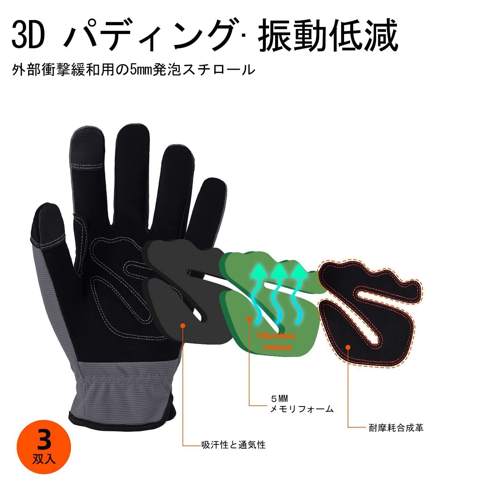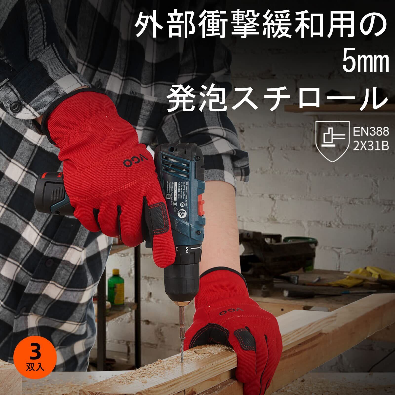 [Vgo...] 3双パック メカニックグローブ 作業手袋 補強当て スマホ対応 作業用手袋 合成革 手袋 多目的 春秋用 薄手 作業グローブ 現場用てぶくろ ワーク手袋 防振手袋 定検 整備グローブ 救援 (M,レッド+グレー+イエロー/組, NB7581) | Bloomia