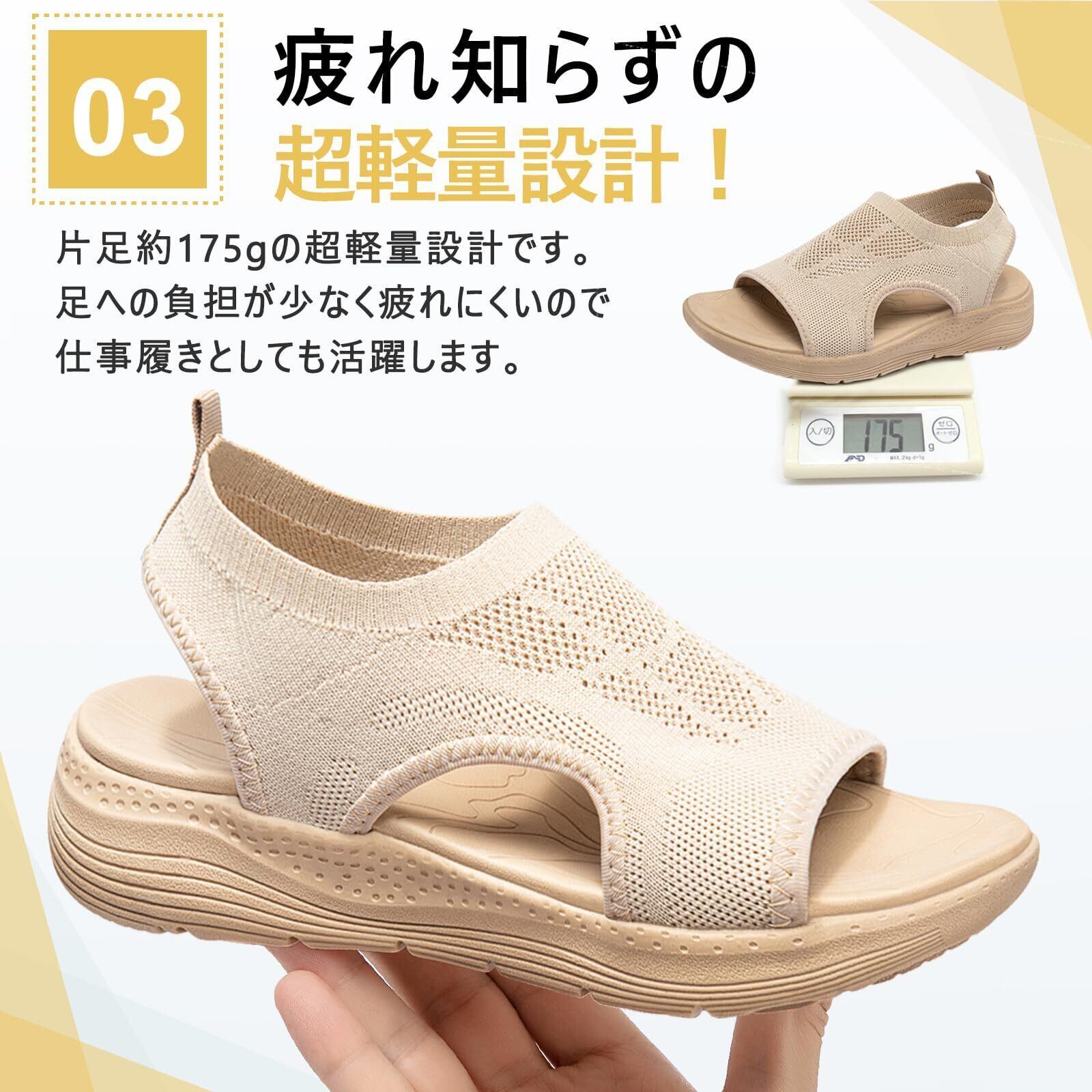 [MERPHINE] スポーツサンダル レディース ニット メッシュ 厚底 オフィス サンダル 夏 通気 軽量ウォーキング 歩きやすいおしゃれ オシャレ