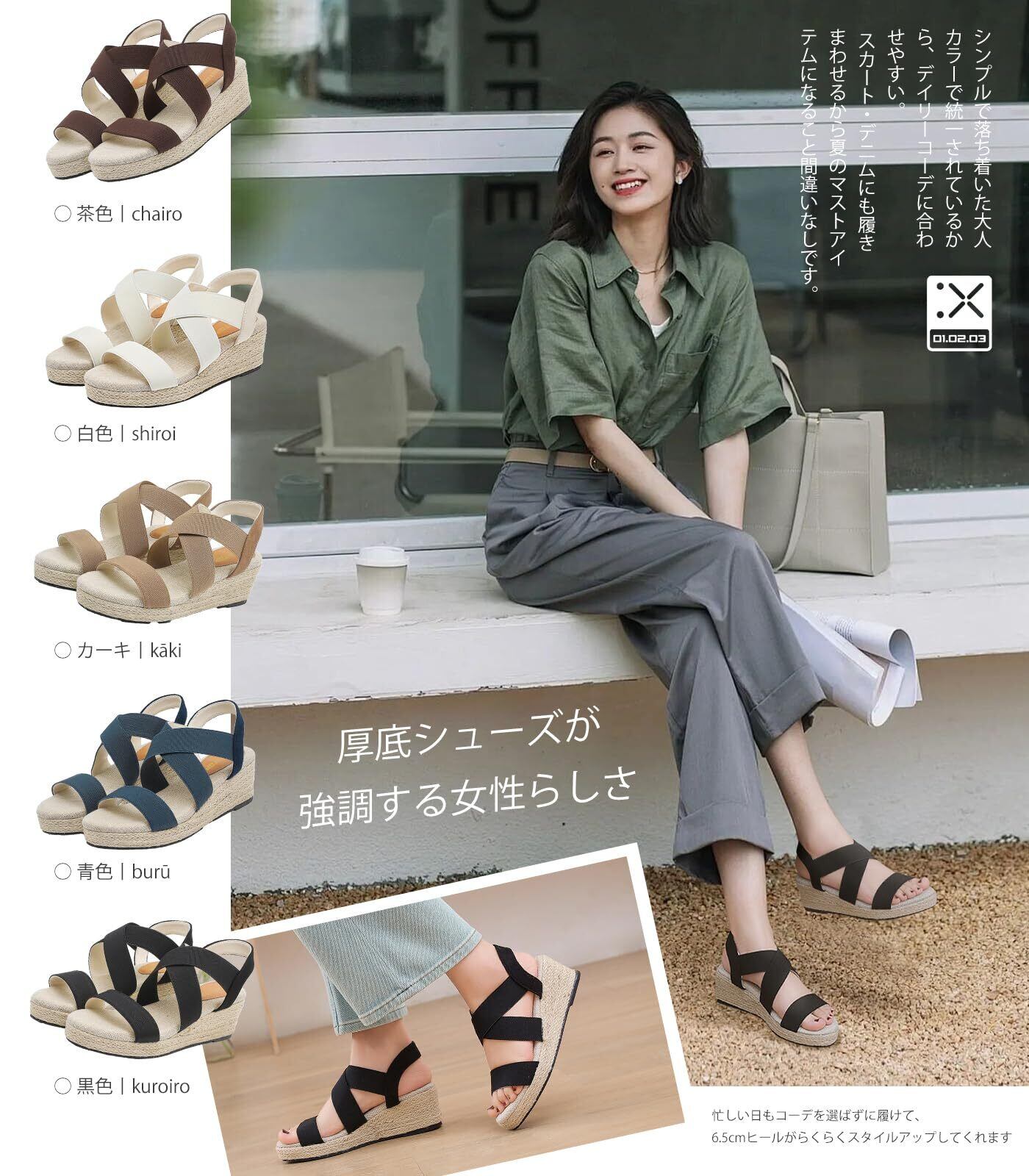 [ziitop] ウェッジソール サンダル レディース オシャレ 厚底 オフィス ウォーキングサンダル クロスゴムベルト 歩きやすい ファッション 美脚 軽い 人気 通気 御洒落 疲れない 滑り止め 6.5CM | Bloomia