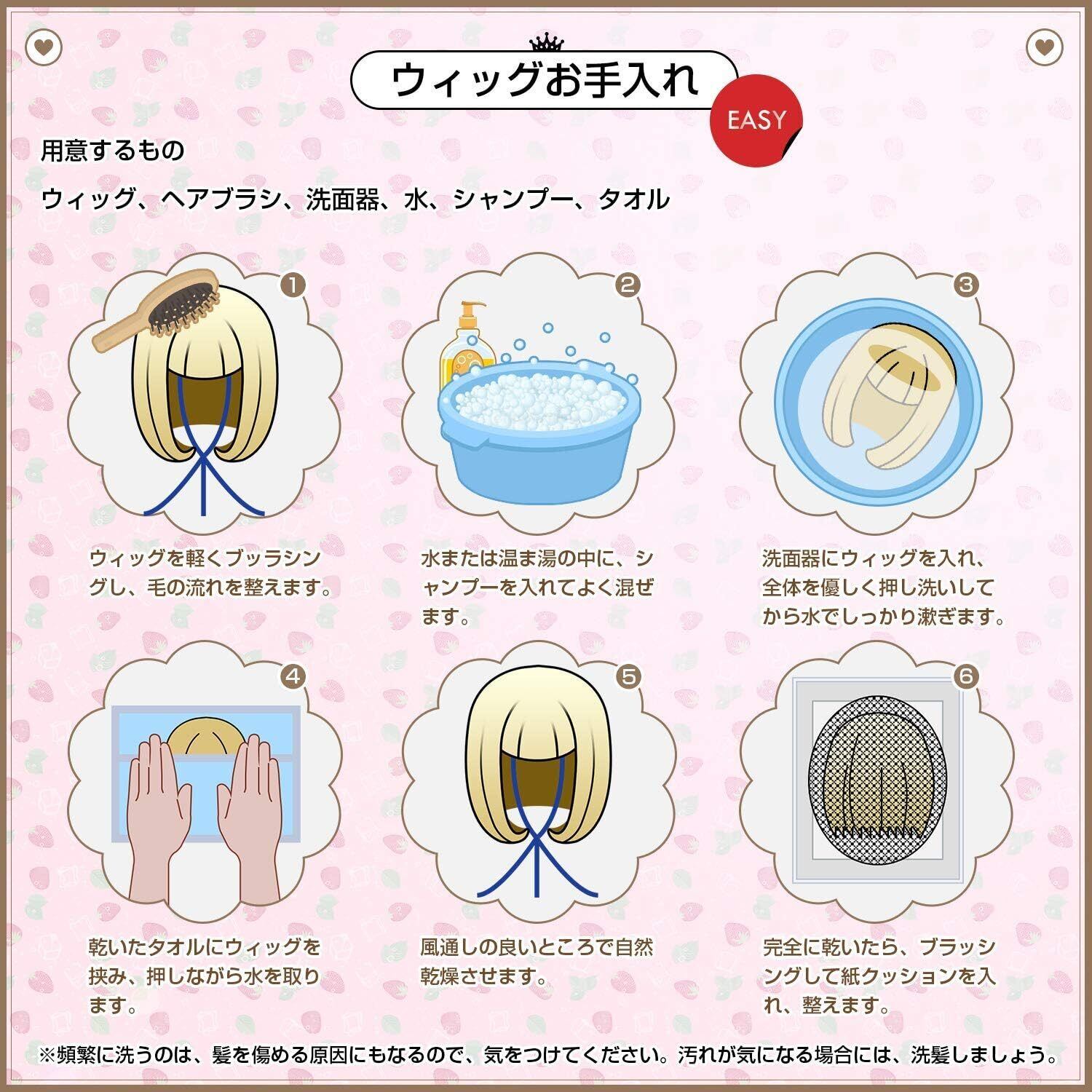ご注意:①ご使用初期は、生産工程上でカットされた髪が比較的多く混入しており、抜け毛のように見られる場合がある、不良品ではありません。ご使用を始める前に、ウィッグを軽く振り、優しくブラッシングしてからご着用ください。②長時間の運輸の原因で、商品が届いた時に、写真のような形にならない場合があります。ドライヤー、アイロン等を使用することができます。③色合いの感じ方には個人差があり、撮影状況·PC環境により色合いが異なる場合がありますので、ご了承の上ご購入をお願いいたします。もし商品にが気に入らない場合、いつでもお気軽にご連絡ください。至急対応させていただきます。