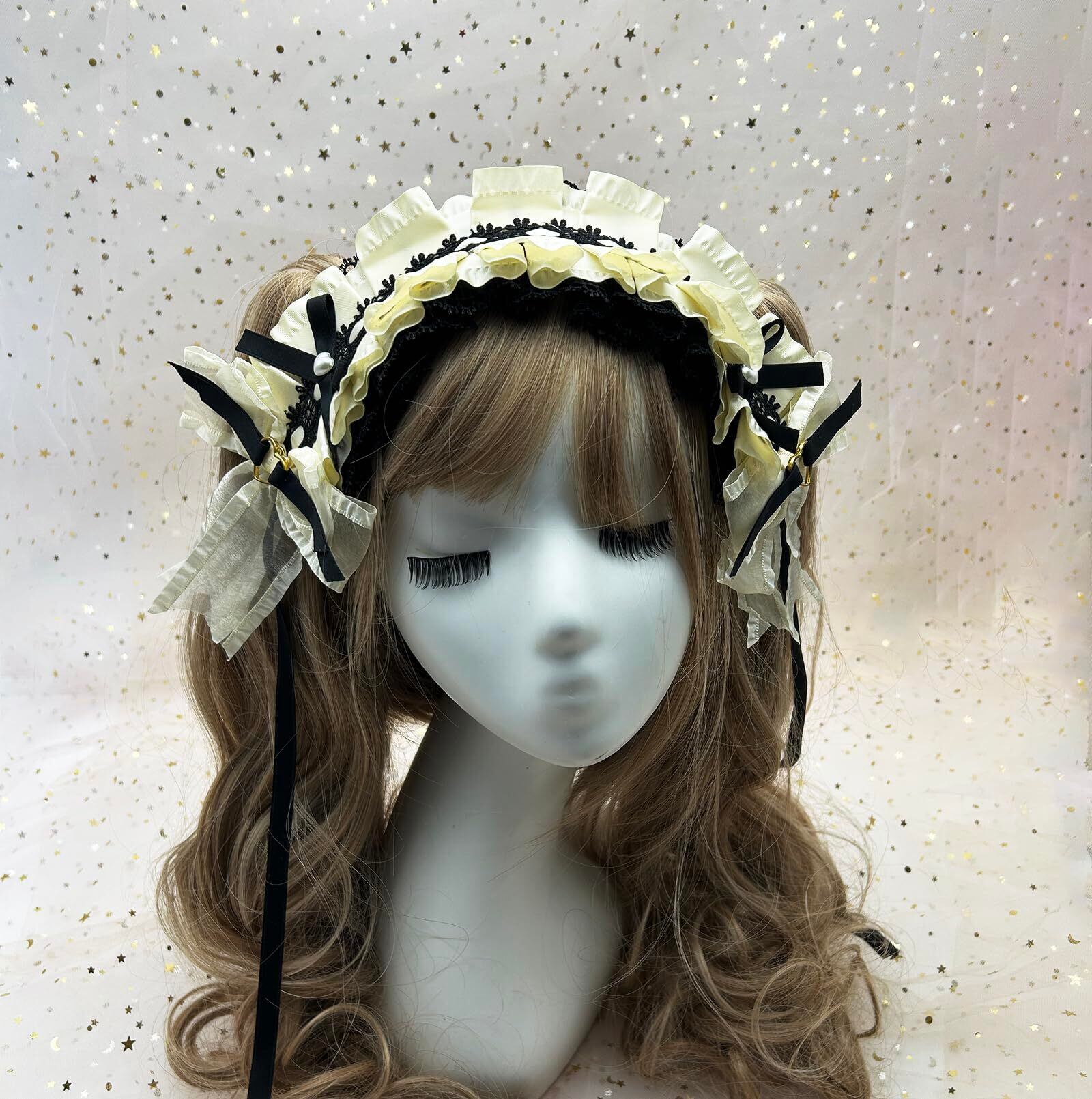[Acoolser] 甘いクール ロリータ 髪飾り 蝶結び付き ヘアアクセサリー レース レディース カチューシャ フリル ゴスロリ リボン コスプレ系 萌え系流行 お人形茶話会 パーティー エンゼル lolita おしゃれリかわいい ヘッドドレス (ベージュbeige) | Bloomia