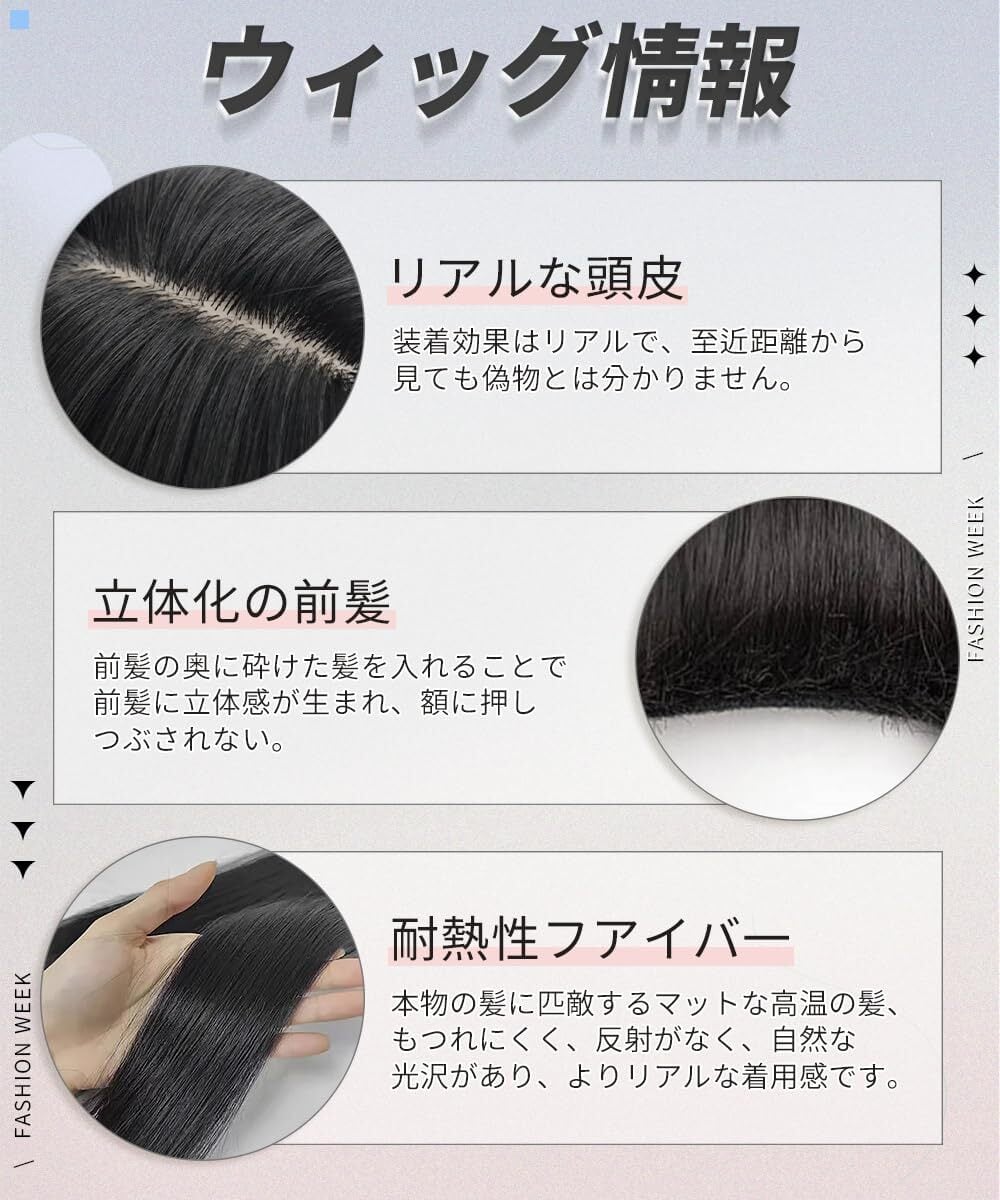 【素材】:高温糸高級ファイバーで、コテ・アイロンで120度以内をお勧めです。 人工頭皮を採用し、人毛に近づいたまるで自分の髪ような質感、光沢、非常に柔らかい手触りです。