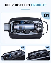 【大容量】内部は十分な広さがあり、伸縮性のあるストラップ付きのメインコンパートメントでボトルを立てて収納できます。複数の内ポケットがあり、洗面用具やひげそり用品の整理に役立ちます。
