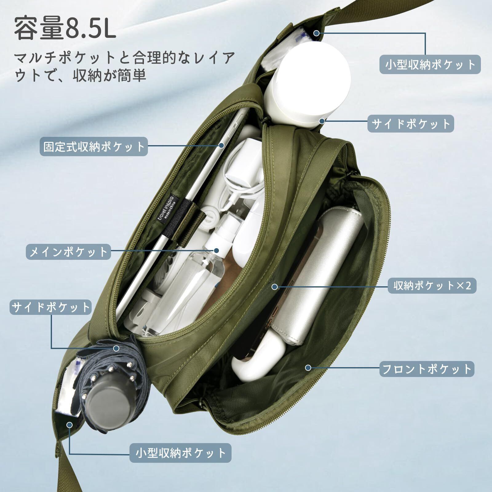 Travel Inspira 3WAY ウエストポーチ 大容量 8.5L 薄型 軽量コンパクト 多機能収納 おしゃれ防犯 [パスポート独立収納/通気性メッシュ] スリ対策 海外旅行 通勤 ジム スポーツ セキュリティポーチ ナイロン バッグ 快適設計 グリーン
