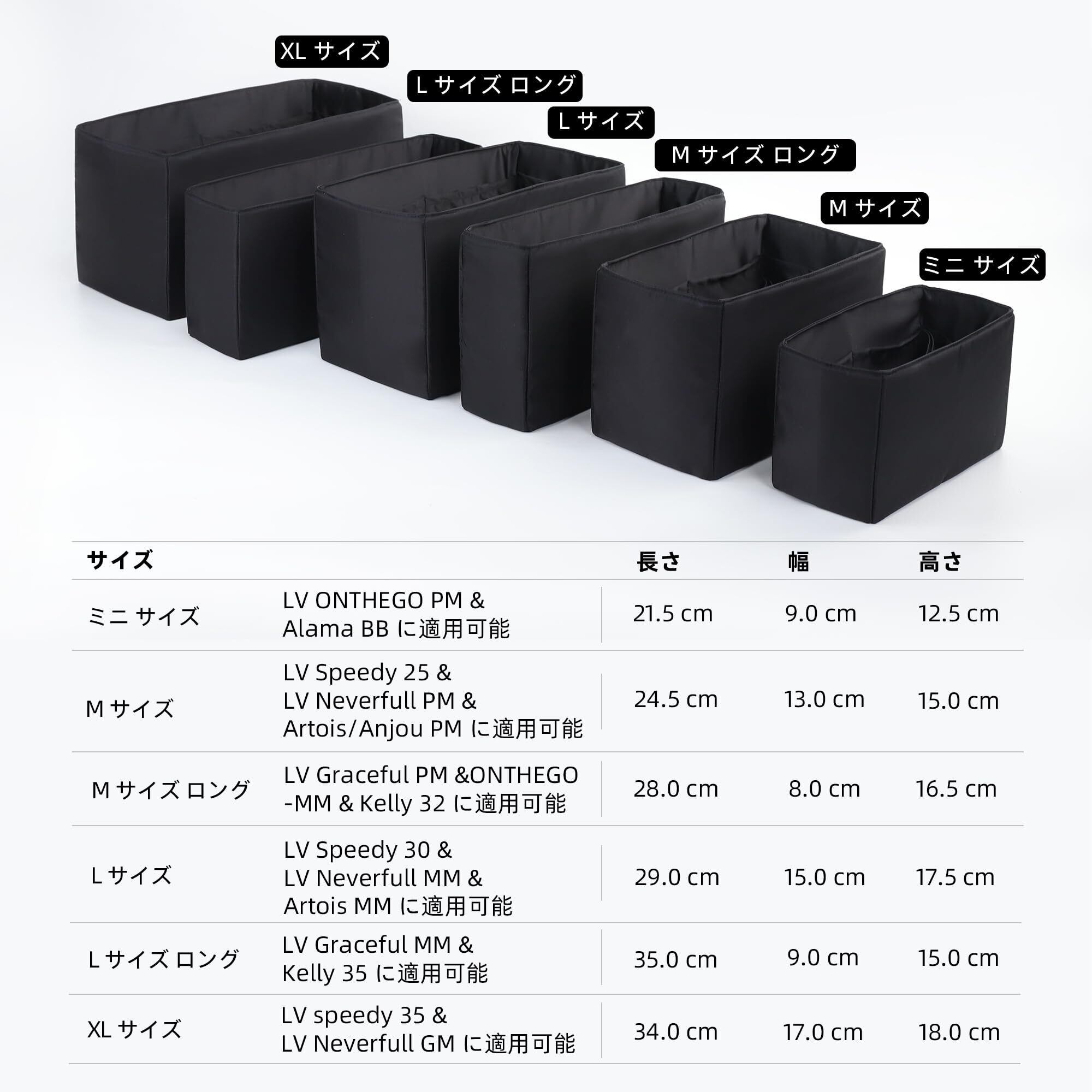 【1つに複数パック対応できる】このインナーバッグはたくさんなバッグタイプに対応しています。大容量のトートバッグ、エレガントなハンドバッグ、それともリラックスしたショルダーバッグでも、完璧にマッチして、1 つのバッグで実用的です。1 秒でカバンを取り替えられるため、カバンの中身を再整理する必要がありません 。複数ご愛用バッグ収納の最高のパートナーです。