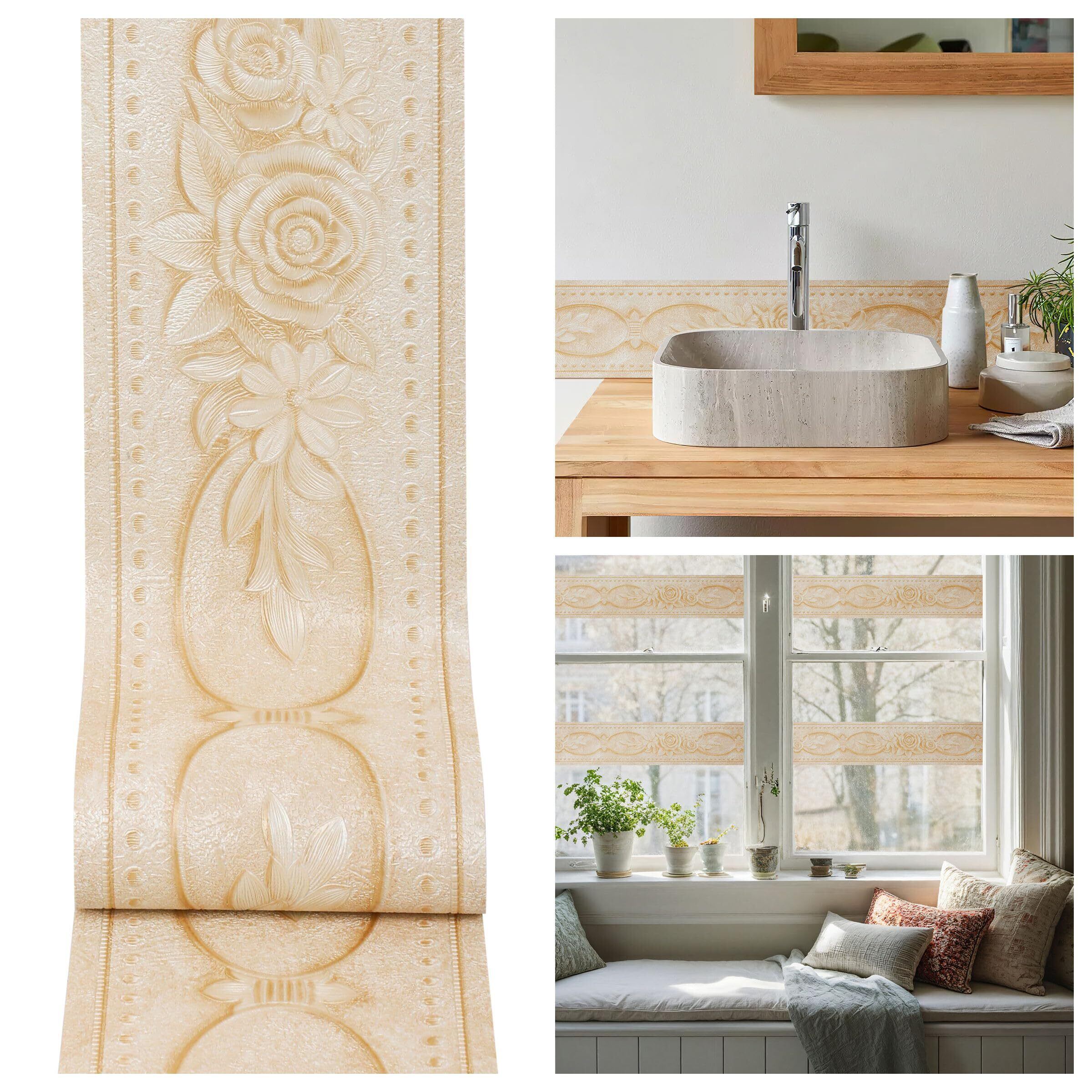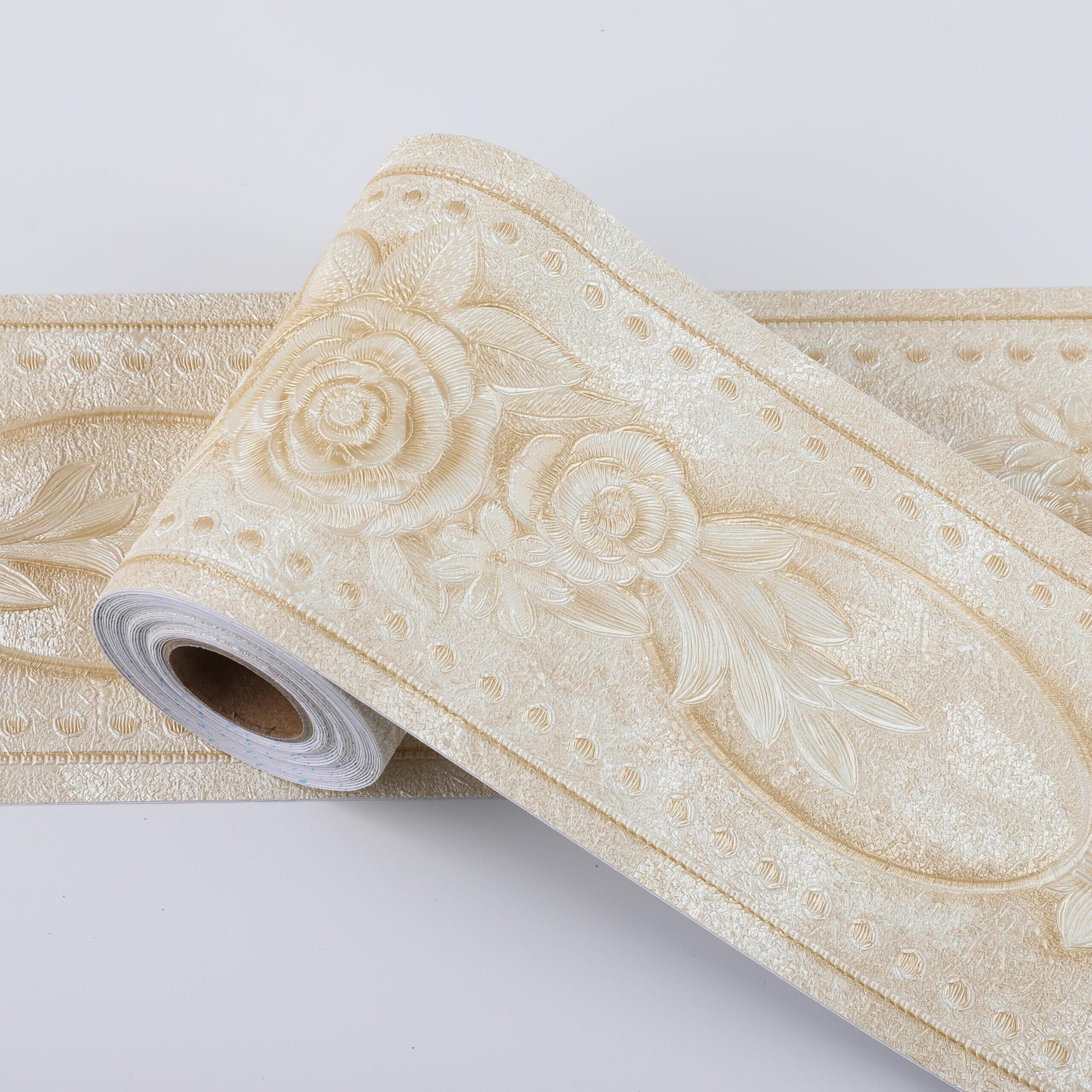 トリムボーダー 壁紙シール イエロー 10cm×5m リフォームシート 花の刺繍 インテリアシール はがせる 3d 立体 浮彫 凹凸 ウォールステッカー diy 補修 壁 洗面所 窓 窓枠 ドア枠 巾木 刺繍花 マスキングテープ