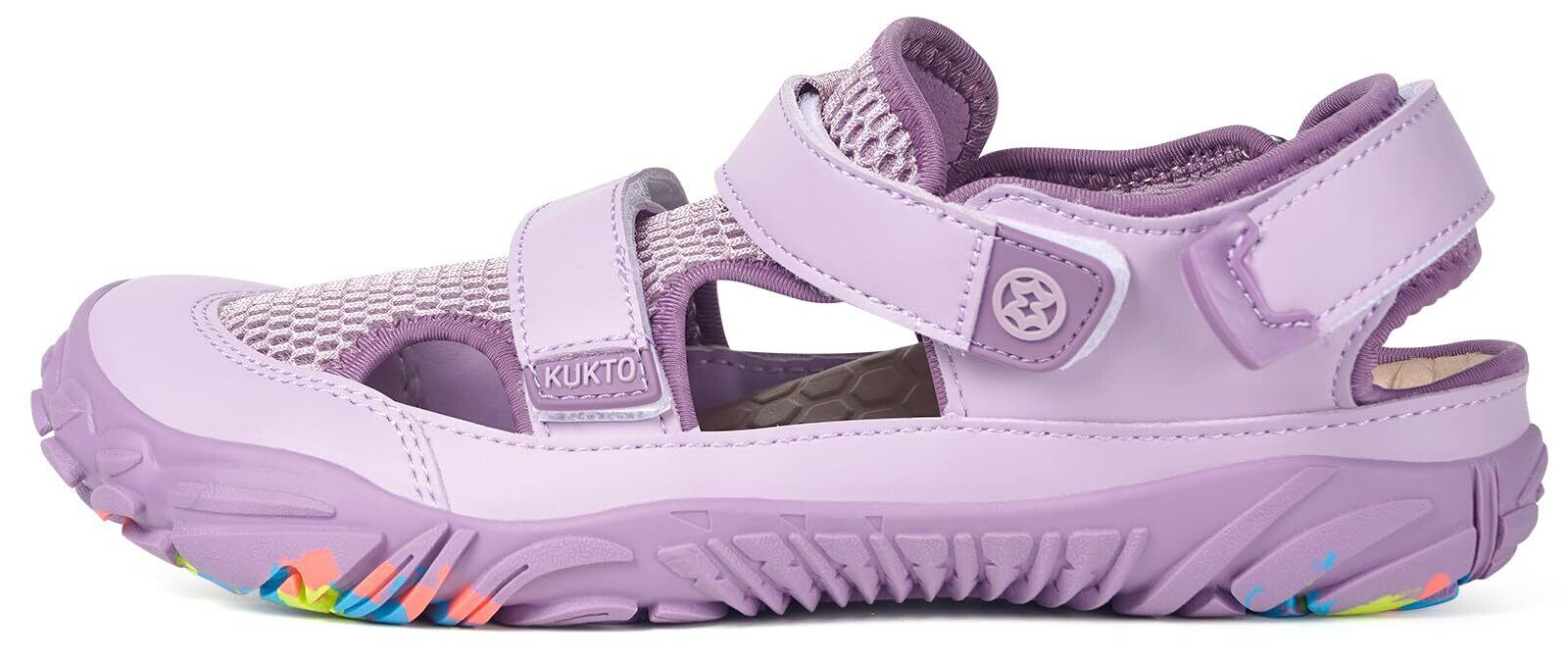 【履きやすい】ワイドトゥボックスで、つま先を圧迫しにくい。甲側とカカトと、3ヶ所のマジックテープでフィット感に応じて調整できて、着脱しやすいし、足形にもフィットしています。