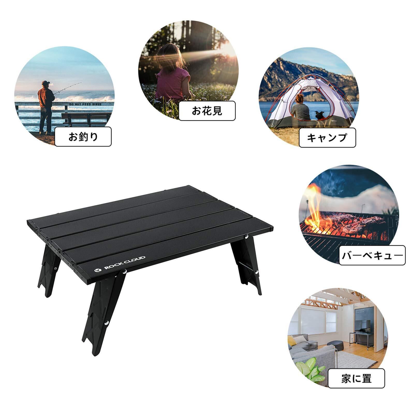 Rock Cloud アウトドアテーブル 高さ調節可能 キャンプ ミニ ローテーブル アルミ製 折りたたみ式 超軽量 耐荷重30㎏ コンパクト BBQ 登山 ツーリング 収納袋付