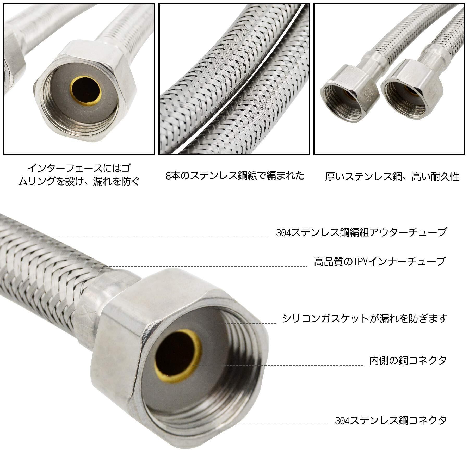 Lychee Light フレキパイプ 水道 トイレ 配管 ホース 洗面所、トイレDN15 ホース/チューブ 20CM-200CM ステンレス鋼製で耐食性に優れる 便器や小便器、水栓、蛇口、シャワーヘッド、シャワー、給湯器用配管(2本セット)(30CM) | Bloomia