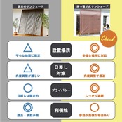 ●紫外線遮蔽約82%です。シェードを取り付けることで日差しを防ぎ、室内の温度上昇を抑えてくれるので、エアコンなどの使用頻度を軽減させ省エネ効果も期待できます。また、家具の劣化を防止することができます。