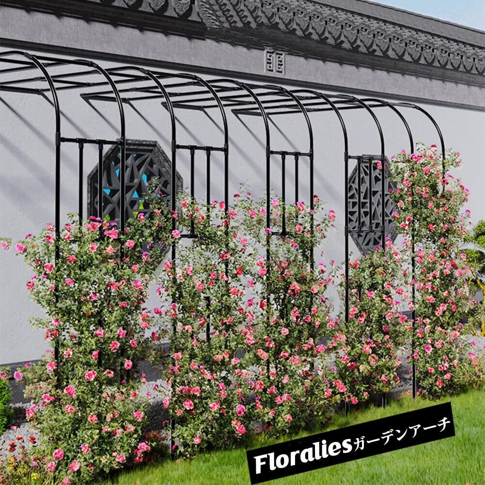 Floralies ガーデンアーチ 半円形 アーバー ローズ ツタ ハーフアーチ 高さ240cm 壁際 ガーデンアーチ トレリス 家庭 庭 つる植物用 黒 ステンレス鋼管 パーゴラ・アーチ (ブラック-1セット, 長さ60×奥行40×高さ240cm) | Bloomia