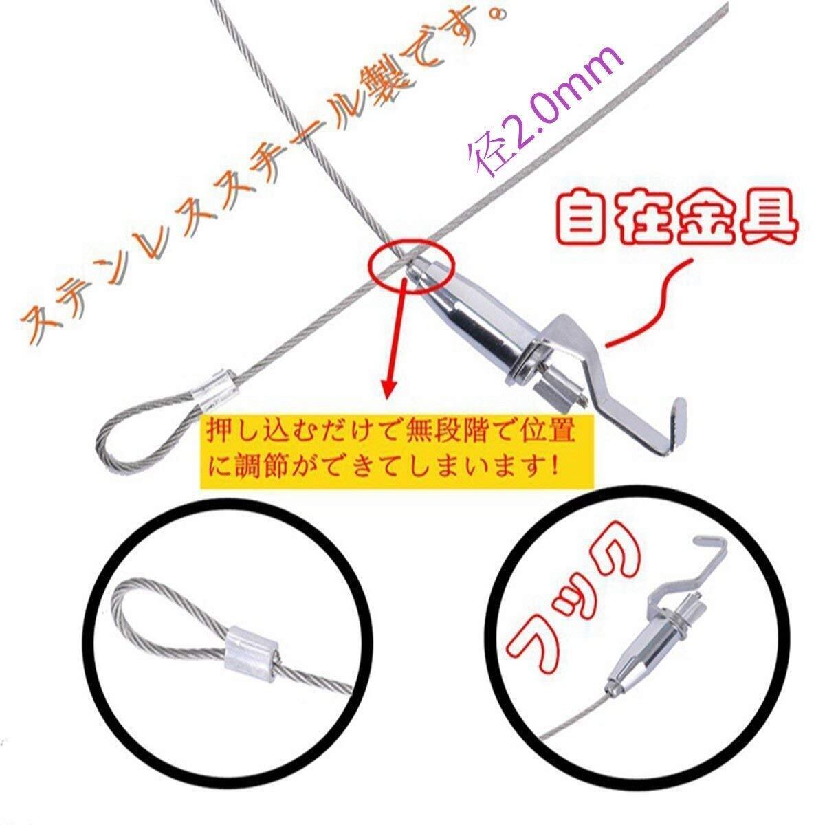 自在フック U型ピクチャーレール用 飾って見せる 吊り 径約 1.0-1.5mm 0.5m-2m 耐荷重約30kg (ピクチャー ワイヤー 0.5m)