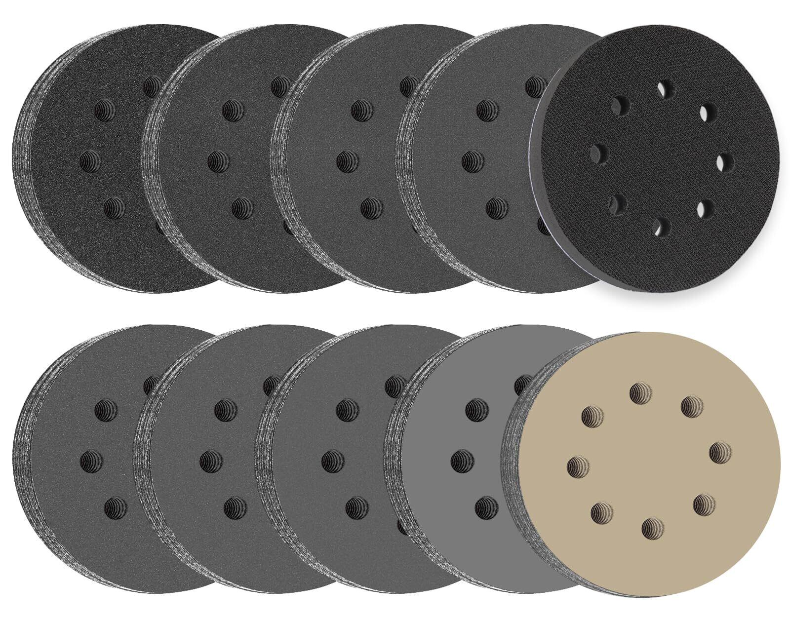 HWXINIE サンディングディスク 125mm 耐水ペーパー セット #120~3000番 マジック式 8穴 ランダムサンダー ペーパー (#120#240#400#600#800#1000#1500#2000#3000 ×各5枚)付属 曲⾯⽤アダプター×1,電動サンダー用 サンドペーパー,ヘッドライトの研磨 木工DIY作業に 金属磨き(46枚入) | Bloomia
