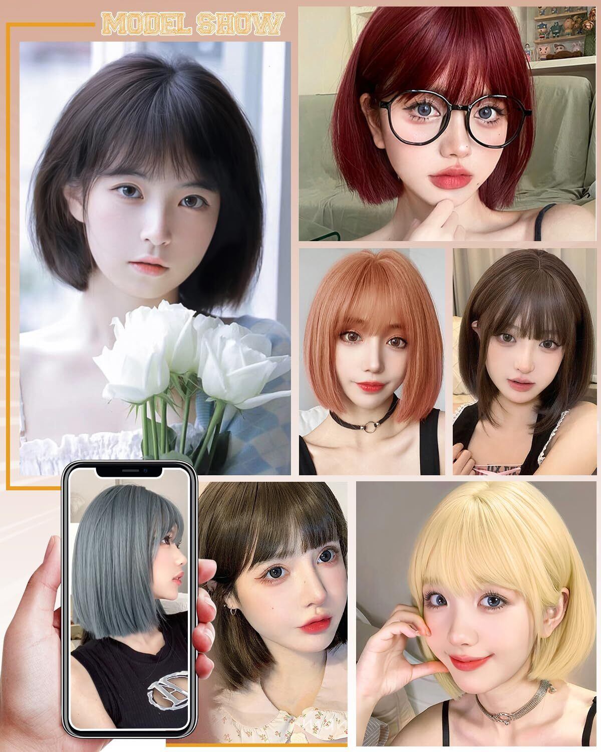 【可愛い】可愛いショートボブは、清潔感と活気を演出しています。それに、素敵な色合いもあります。とても控えめながら女の子らしいピンクであります。 ※モニターが異なるため、色の違いは避けられませんが、ご了承ください。