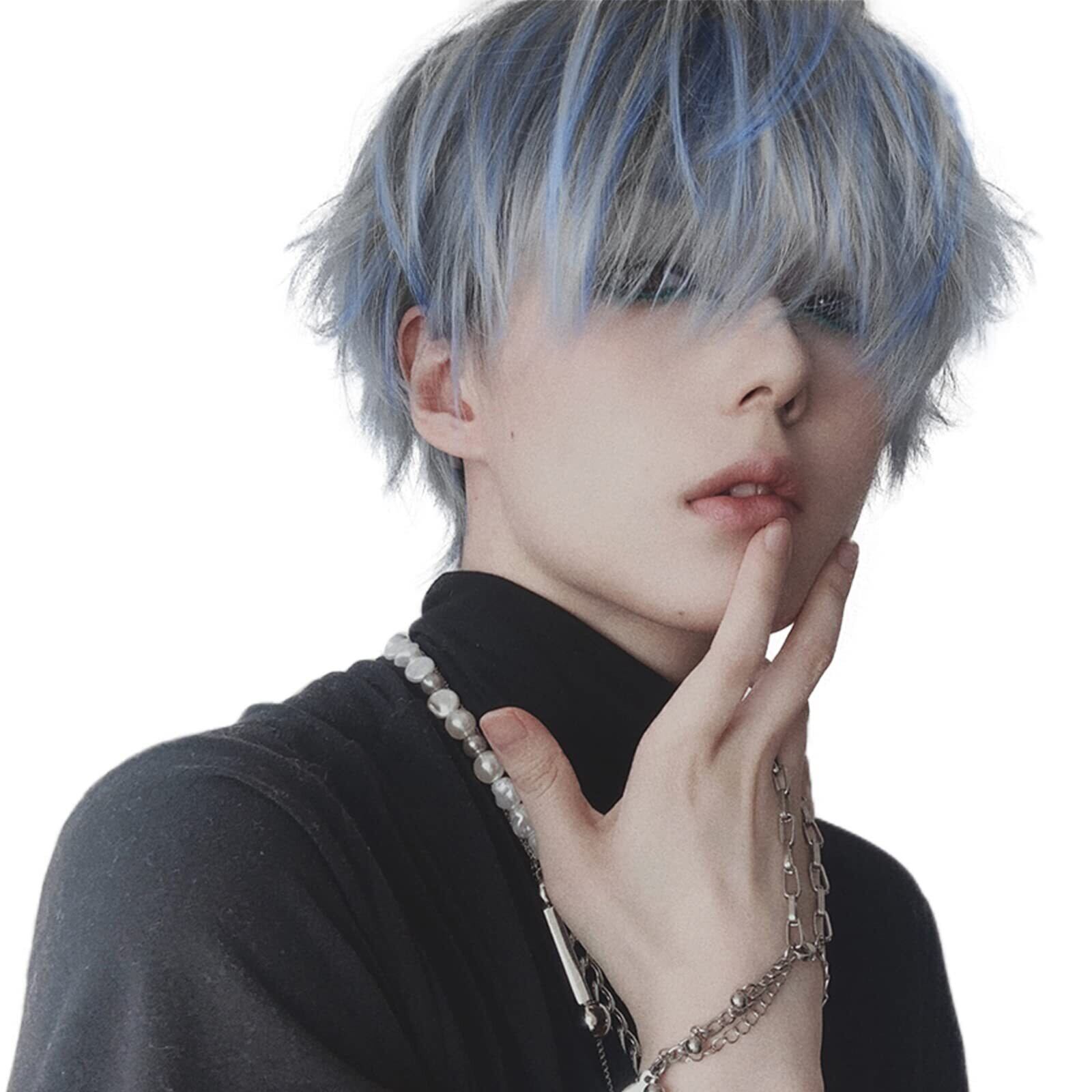 BARSDAR ウィッグ メンズ 男装 かつら ショート インナーカラー フルウィッグ 黒 男性 原宿 イケメン ハンサム 自然 小顔 耐熱 人気 ファッション イメチェン 男女兼用 グラデーション 短髪 ネット/櫛付き グレー×ブルー | Bloomia