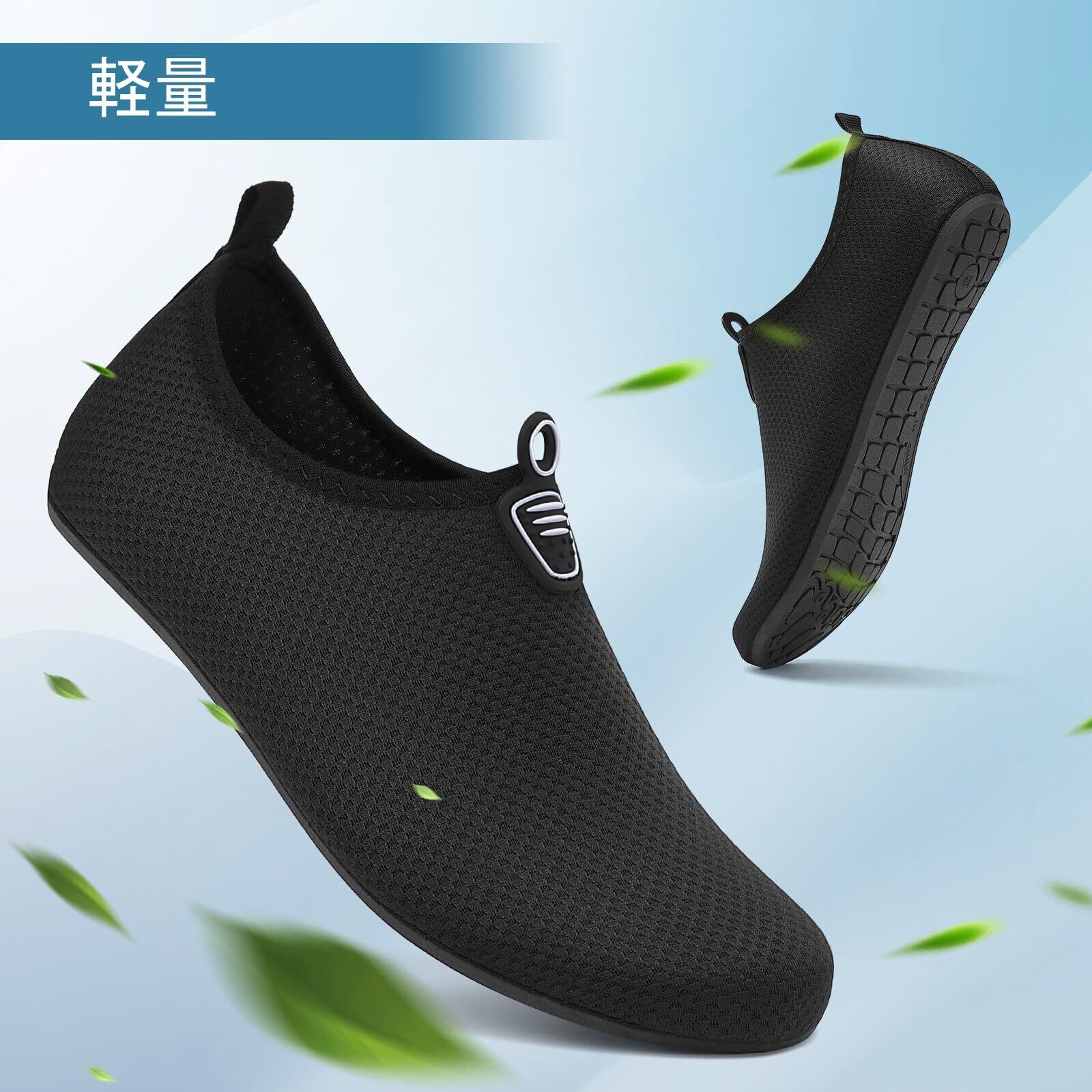 【軽量・快適】マリンシューズは軽量設計で、足に負担をかけません。長時間の使用でも快適に過ごせるため、ビーチやアクティブなアウトドアシーンに最適です。
