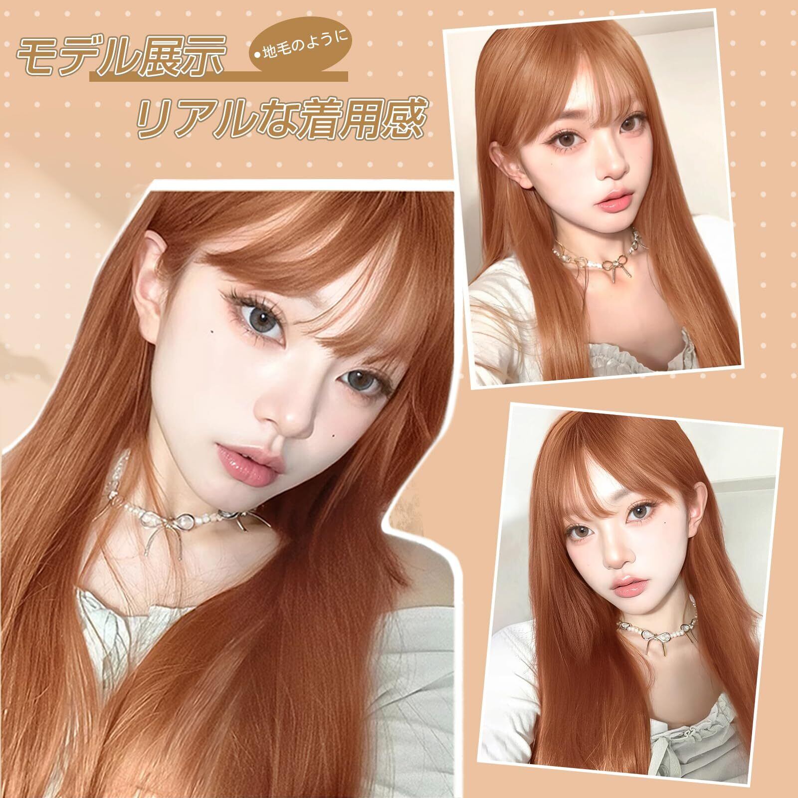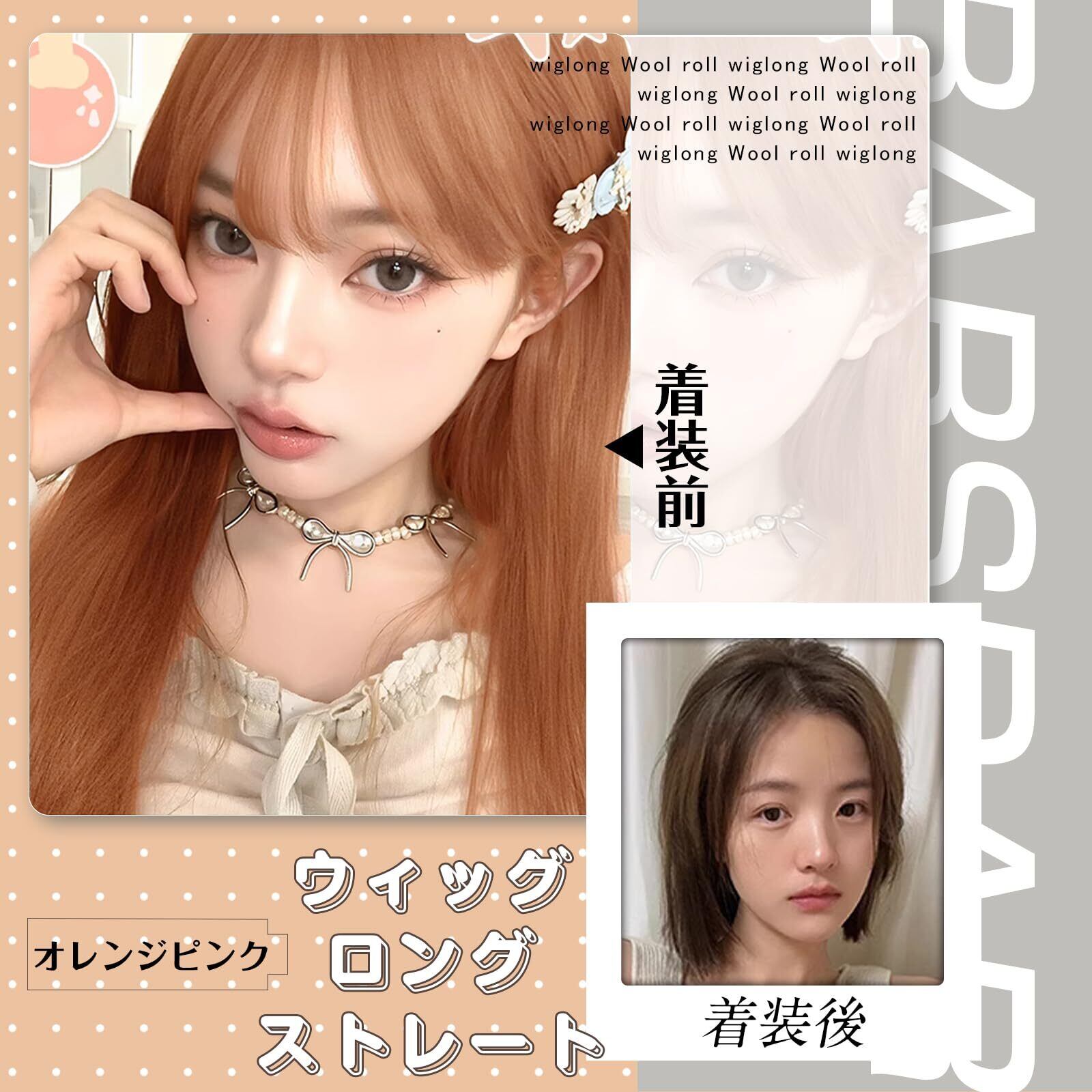 [BARSDAR] ウィッグ ロング 黒髪 ストレート フルウィッグ 女性 女装 かつら 自然 耐熱 小顔 原宿系 ロリータ コスプレ ファッション 日常 オレンジピンク