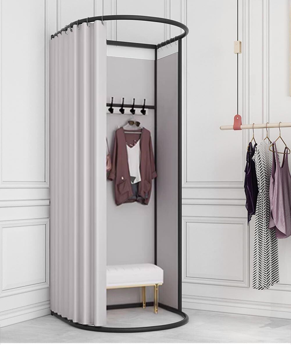 QD-BYM フィッティングルーム 試着室 更衣室 着替え 遮光カーテン シェーディングカーテン付き 衣料品店 洋服店 催事場 安定感 広いスペース 組立簡単 フック付き 仮設 取外し 持ち運び 耐久性 幅85CM×奥行80CM×高さ200CM グレー | Bloomia