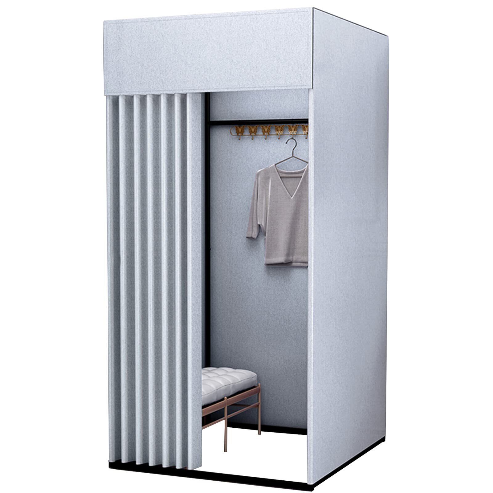 【スペースを有効活用するフィッティングルーム!】この[EasyFit]のフィッティングルームは、衣料品店やポップアップショップでの試着に最適なポータブルな設計です。シェーディングカーテンがプライバシーをしっかり守り、安心して着替えができます。