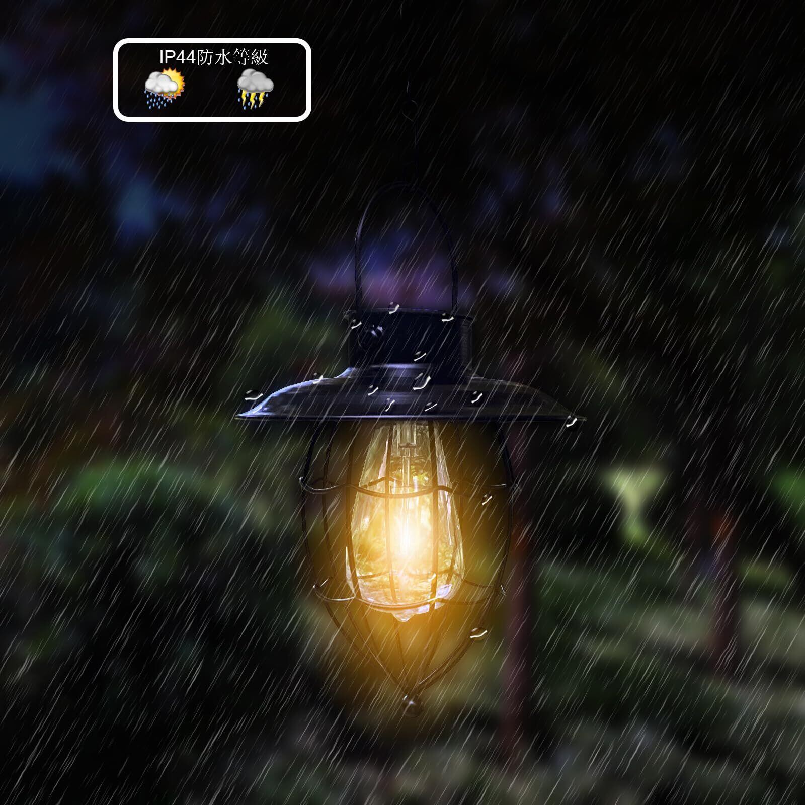 【防水仕様・取付簡単】IP44の防水仕様で、中庭や玄関の装飾照明として中庭の木やブラケット、チェーンなどに吊るしても安心です。雨が降っても晴れても、太陽光が十分にあれば充電がより多くなり、点灯時間が長くなります。
