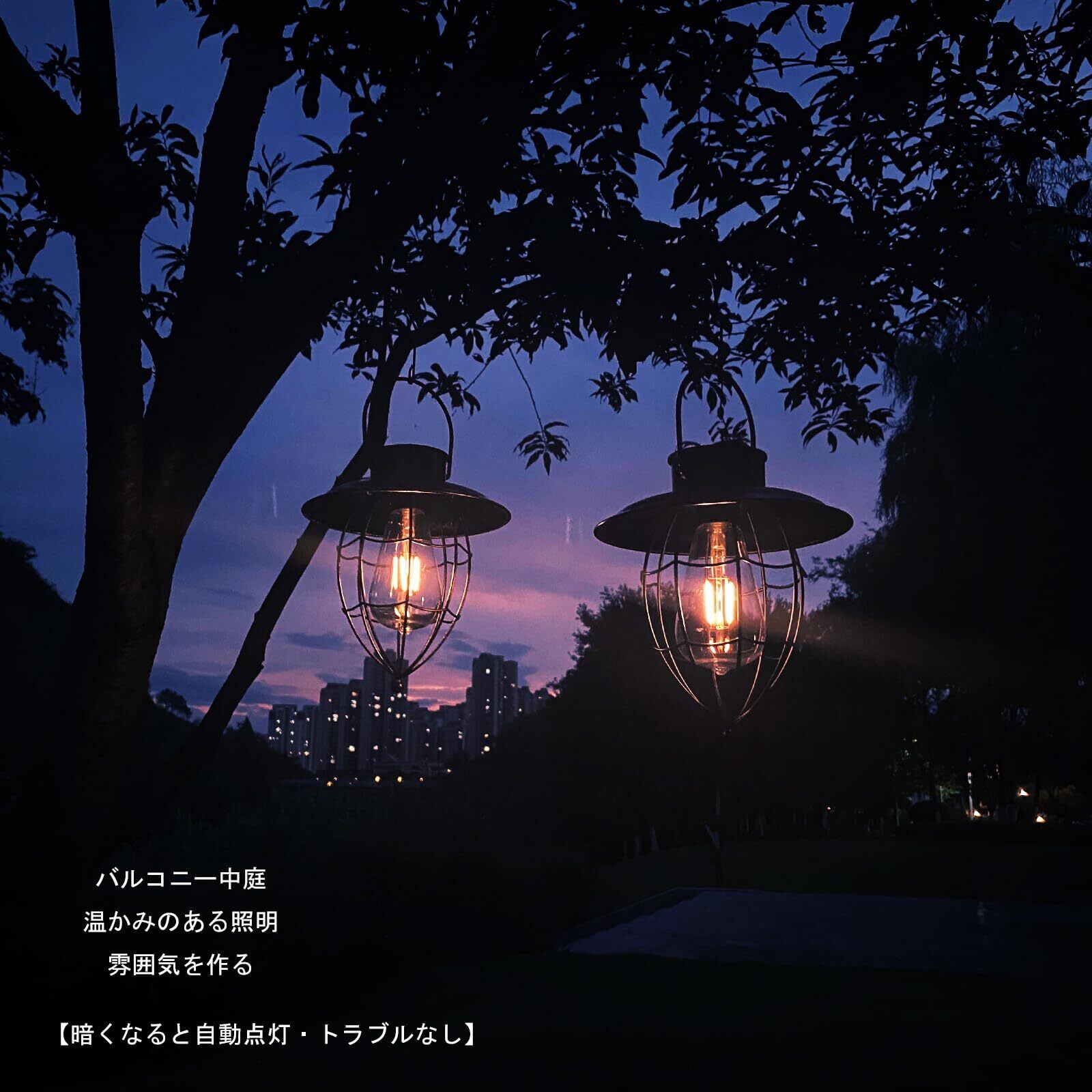 【レトロソーラーランプ】ソーラーアイアンランタン、レトロなアイアンケージと温かみのある電球色がノスタルジックな空間を演出する、昼も夜も存在感のあるソーラーランプです! 疲れた体と心を癒します。