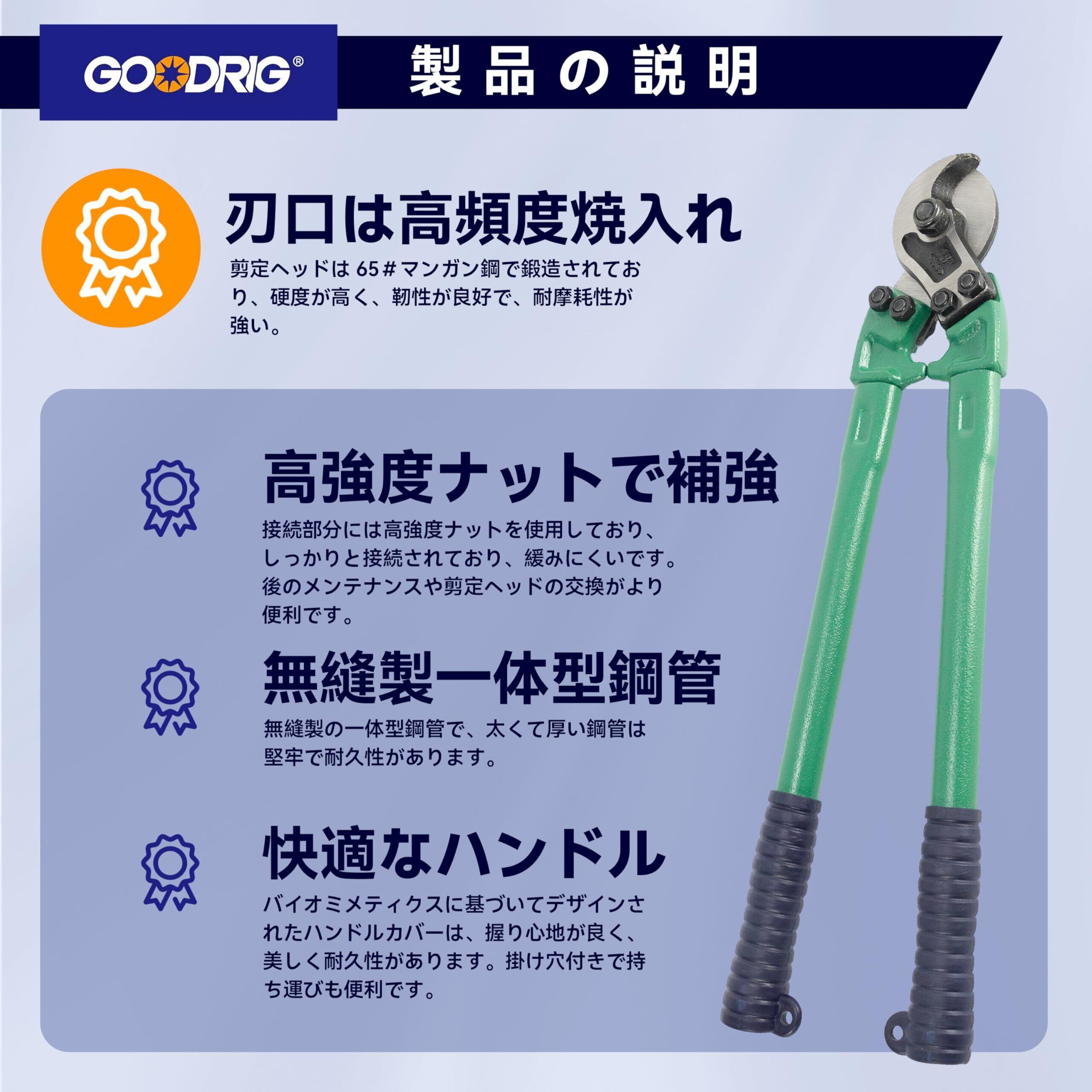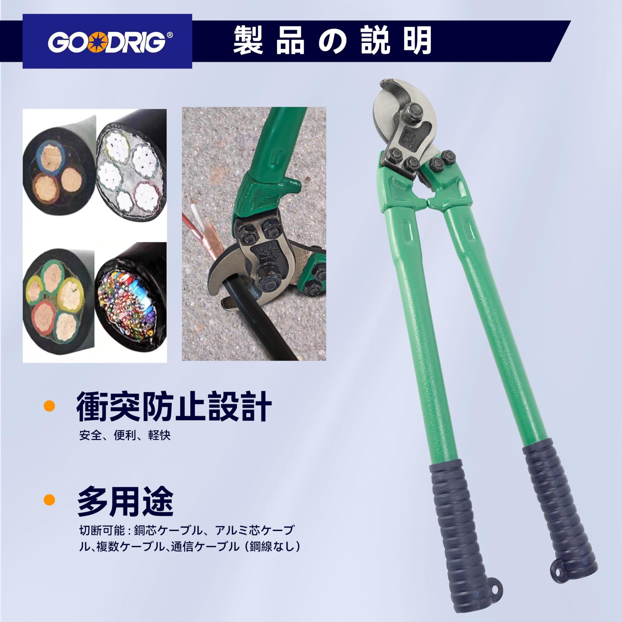 GOODRIG ケーブルハンディカッター 両刃式 ケーブルカッター ワイヤーカッター 18インチ 150sq mmのケーブルを簡単に切断可能