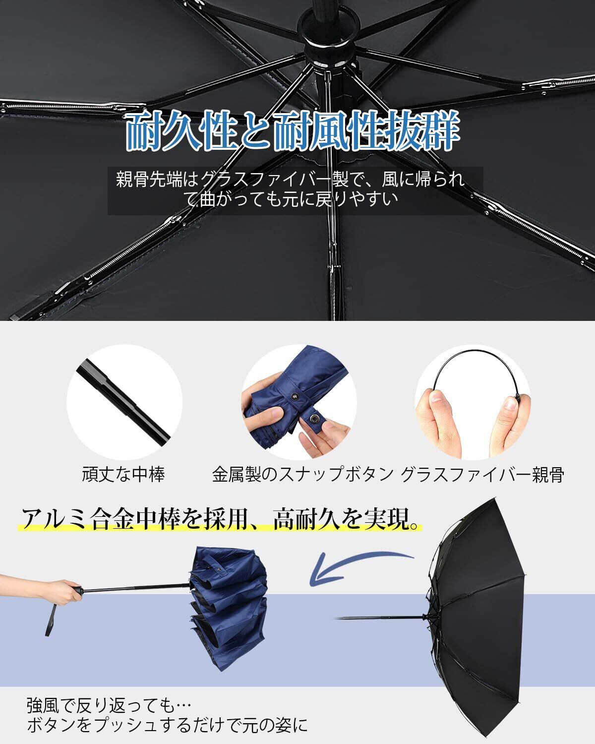 [折りたたみ傘 ワンタッチ自動開閉 大きい 日傘 メンズ 晴雨兼用 完全遮光 耐風撥水 丈夫 高強度グラスファイバー UVカット 遮光 遮熱 梅雨対策 傘 メンズ 男女兼用 8本骨 収納ポーチ付き]