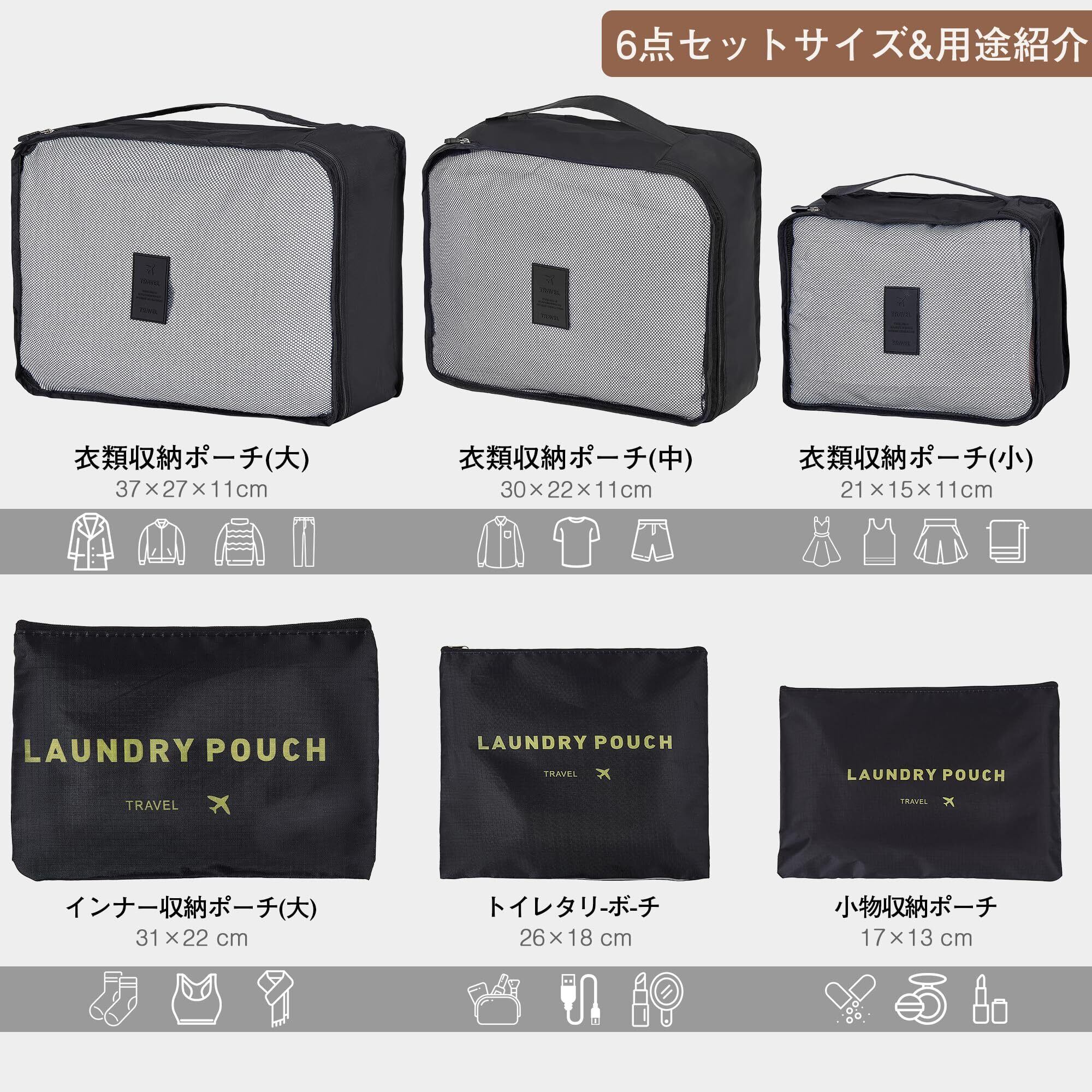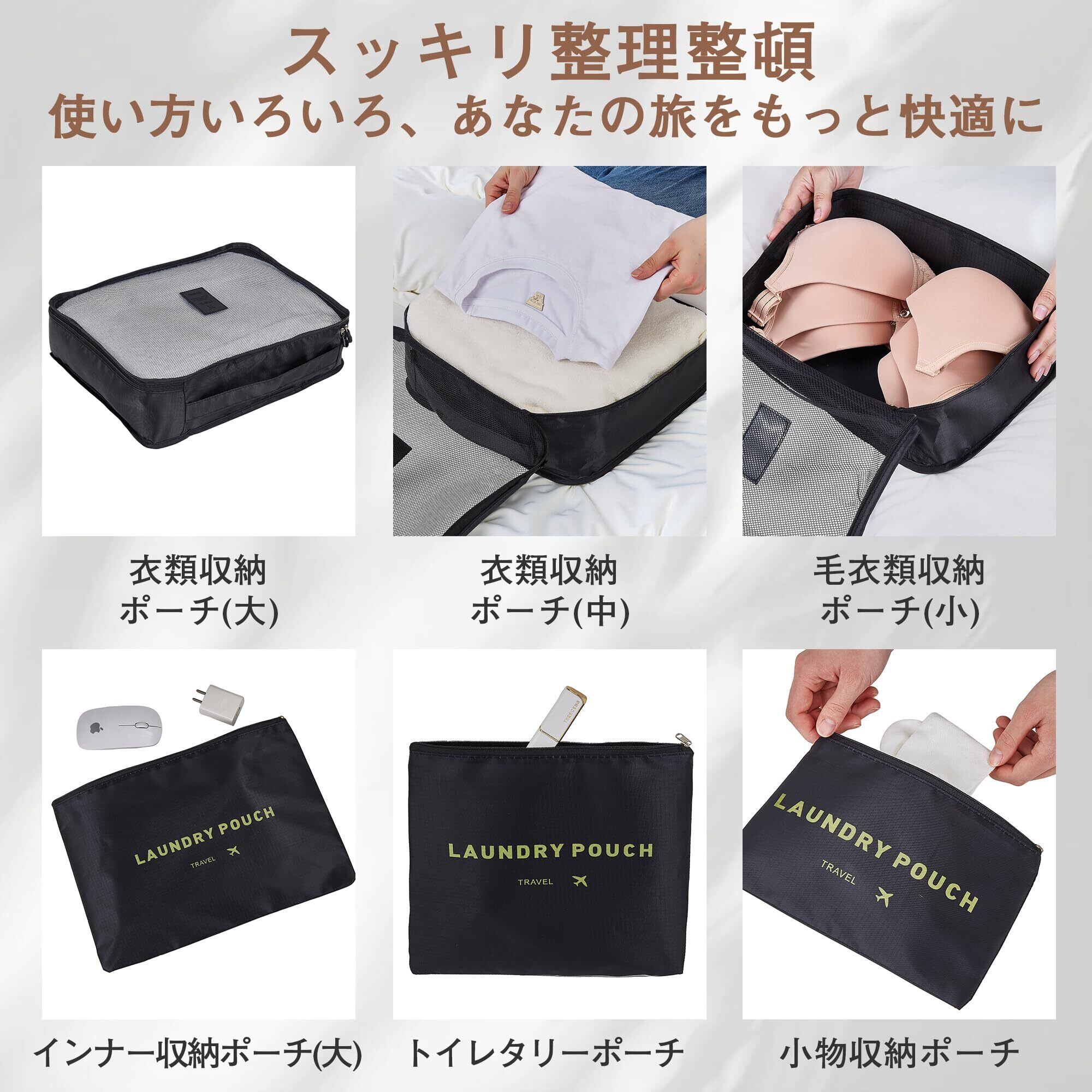 【多機能デザインで使いやすさ抜群!】6点セットには、衣類のパッキングや下着収納、靴用ポーチが含まれており、使うシーンに合わせて自由に組み合わせられます。吊り下げ機能も搭載されているため、ホテルのスペースを有効活用しながら、快適に整理整頓できます。